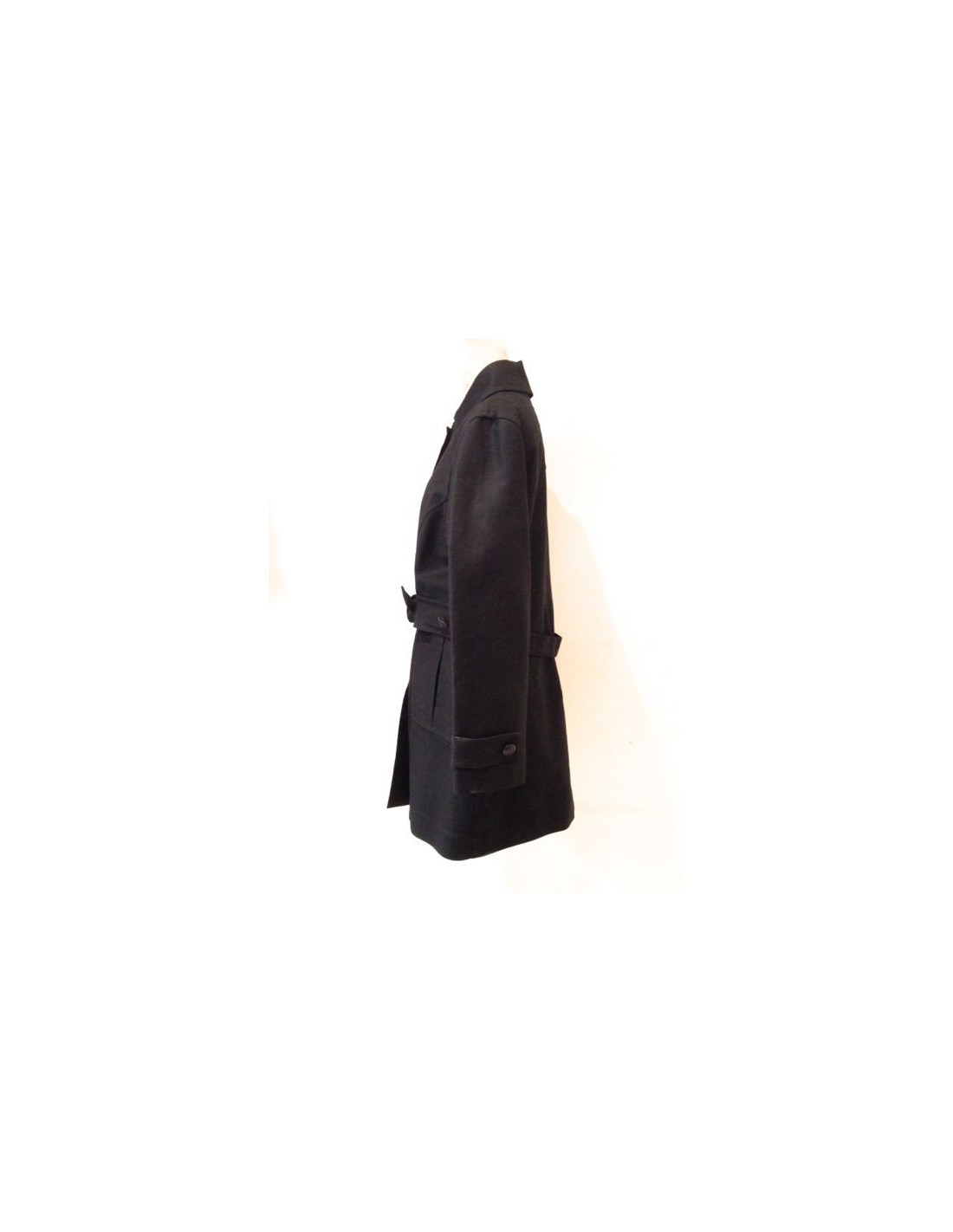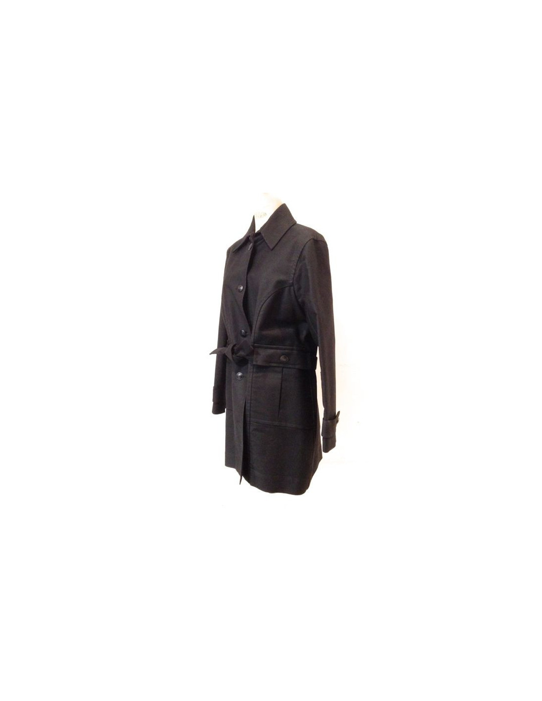 Veste CHANEL 3/4 en coton noir, collection Identification, Automne-Hiver 2007.100% coton. Ceinture basse. Deux grandes poches dissimulées. Boutons noirs siglés CC. Made in France.