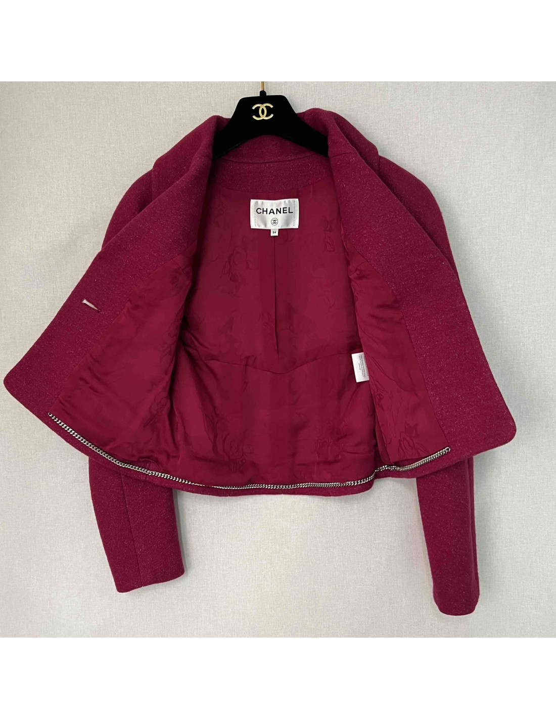 Veste CHANEL T34 laine framboise