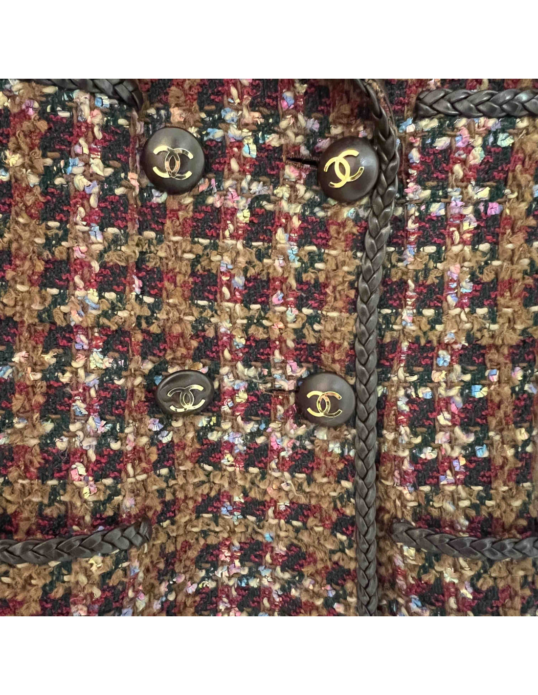 Veste T40 CHANEL tweed cuir marron