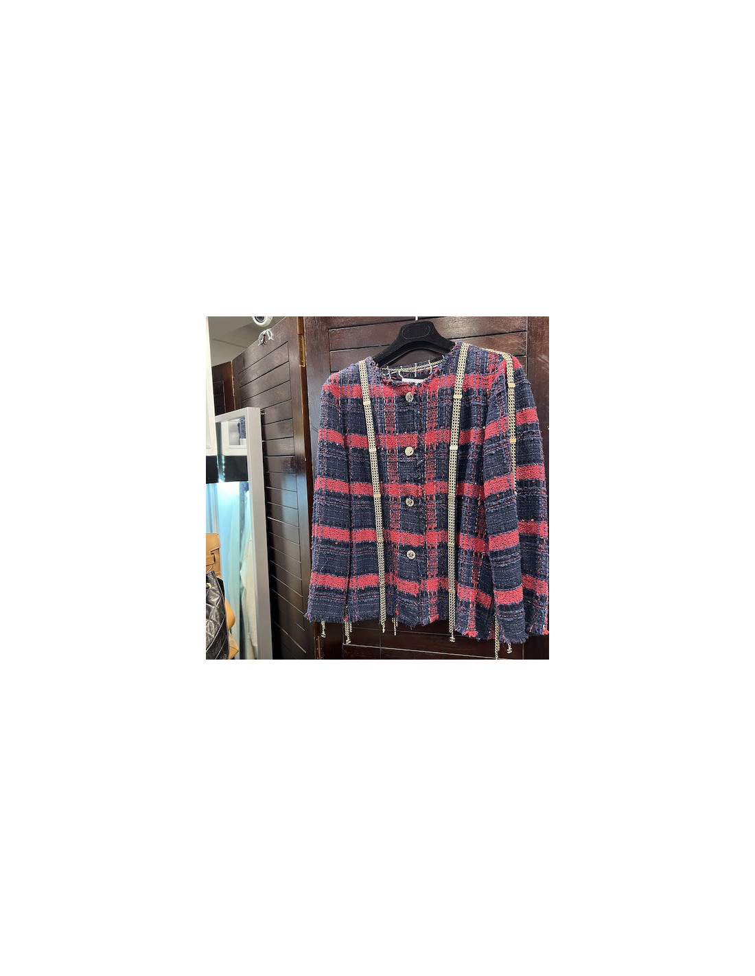 Vendu VESTES Veste courte tweed noir et ambre CHANEL t36 CHANEL 35326 4 300,00 € Veste courte tweed Paris-Saint Tropez CHANEL Condition : très bon étatTaille : 36FRMatière : tweedDoublure : 100% soieCouleur : noir, ambre, bordeaux, fil irisé ambré et orangeDimensions à plat : épaules 38 cm, sous la poitrine 34 cm, hauteur 42 cm, longueur des manches 52 cm, tour de poignet 28 cmAnnée : 2011Collection Croisière Saint-Tropez 2011Détails... Voir