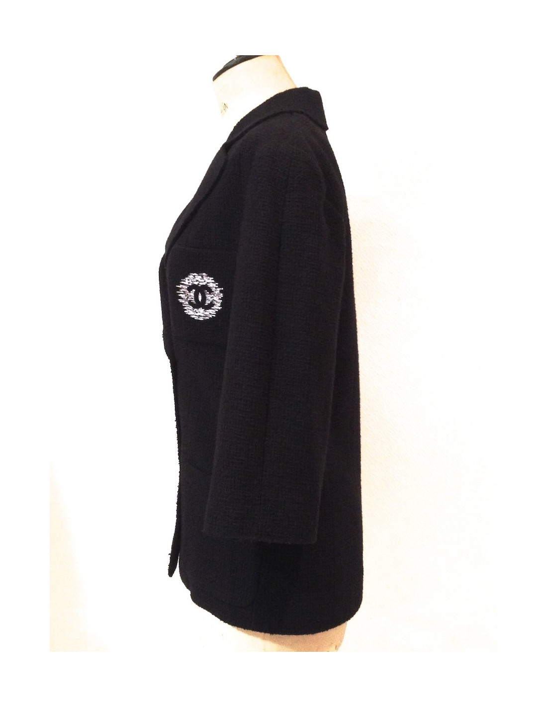 Veste CHANEL, Collection récente en taille 40 , de couleur noir en tweed., avec des manches 3/4.