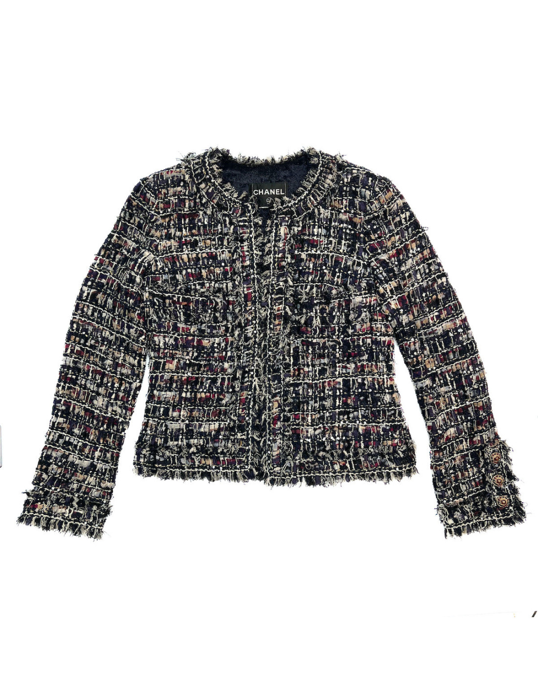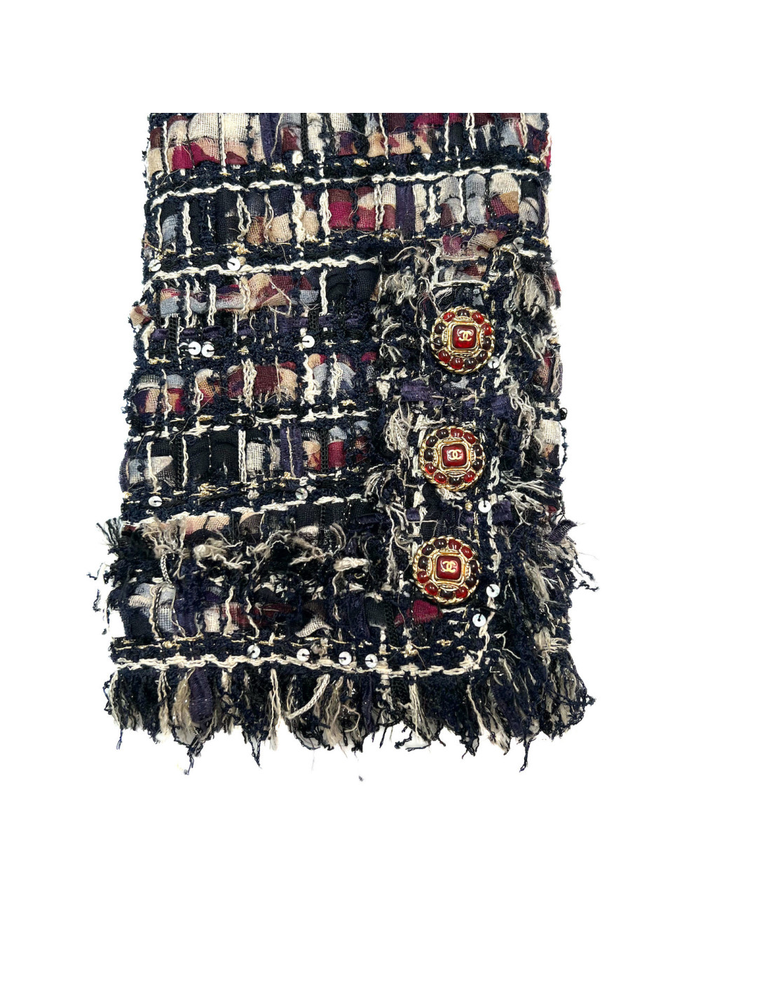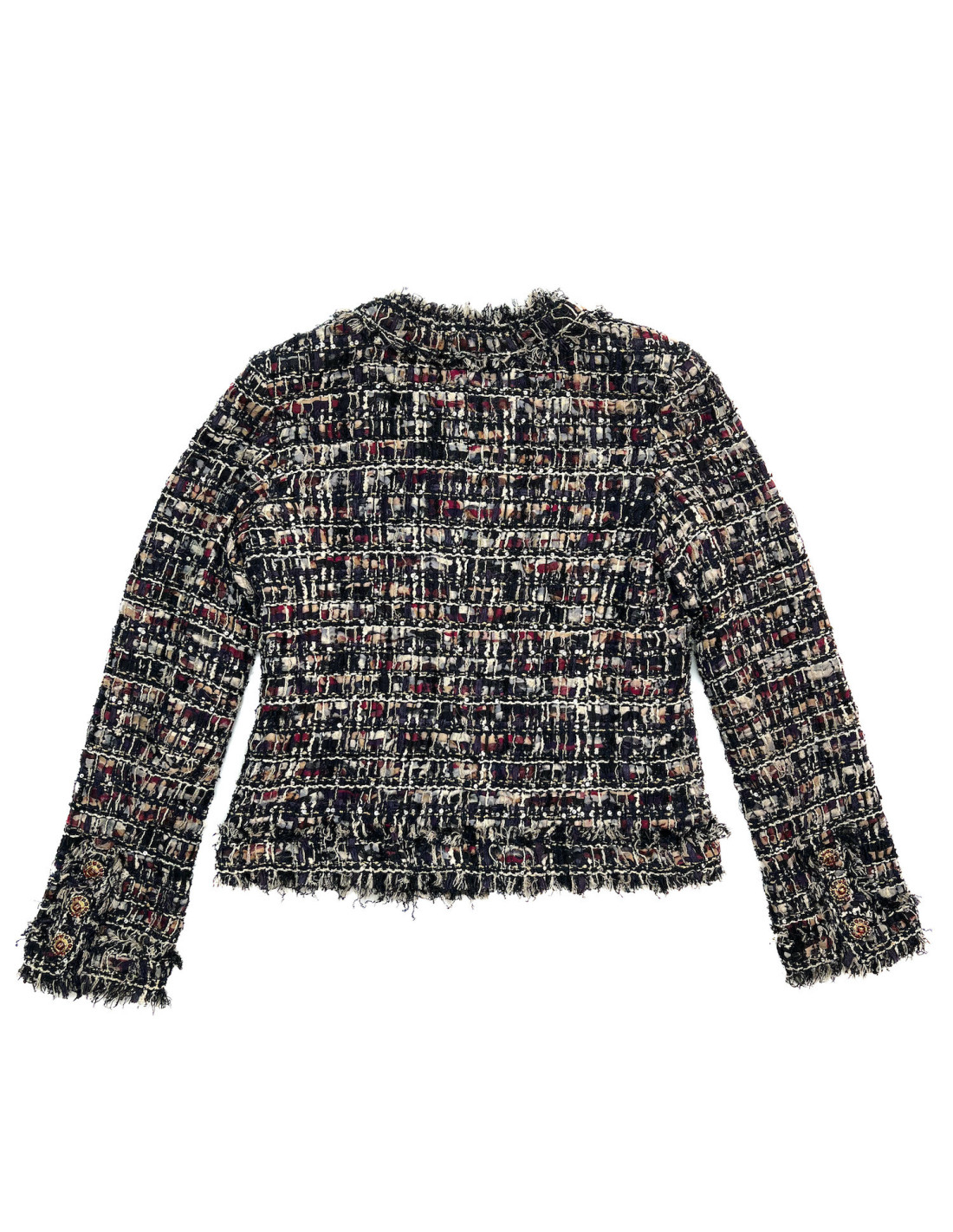 Détails : tissu tressé, fils brillants et détails sequins. Incroyables boutons CC avec des détails en résine. Petites franges sur les manches et sur le col.