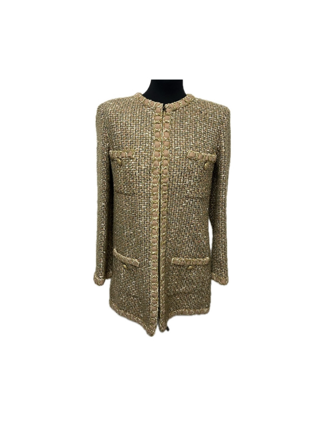 Derniers articles en stock VESTES Veste CHANEL tweed T42 CHANEL 33190 4 300,00 € Veste CHANEL tweed ocre, marron Condition : très bon étatPays de fabrication : FranceTaille : 42FRMatière : acrylique, tweedDoublure : soie marronCouleur : multicolore ocreDimensions à plat: épaules 42 cm, sous la poitrine 46 cm, hauteur 60 cm, longueur des manches 58 cm, tour de poignet 28 cmAnnée : Automne 2003Détails : la veste est multicolore dans les... Ajouter au panier