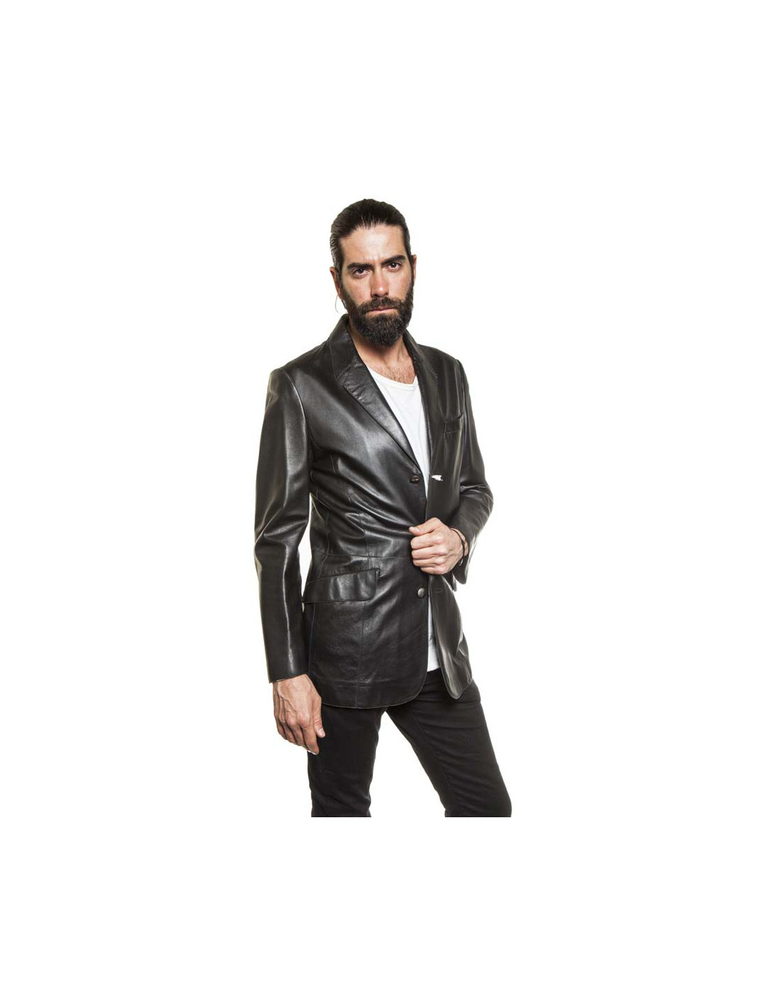 Vintage. Veste/blazer Taille 50 Thierry Mugler homme, en cuir d'agneau 100% souple lisse noir