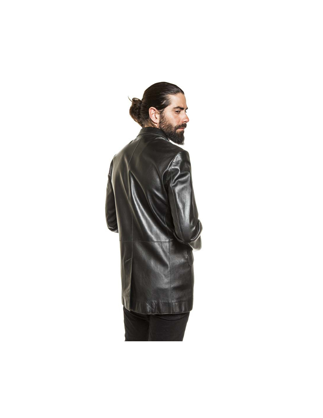 Col à pointes surpiquées, coupe cintrée, fente au dos en bas, 3 boutons argent vieilli mat siglés du logo de la marque "l'étoile", pochette à la poitrine et poches à rabats en biais sur les hanches.