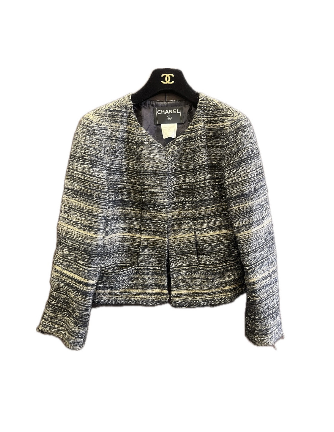Nouveau Derniers articles en stock VESTES Veste Chanel courte T38 Lesage CHANEL 42673 6 300,00 € Veste Chanel courte automne 2002 Condition : très bon étatPays de fabrication : FranceDimensions à plat : largeur des épaules 40 cm, longueur sous les aisselles 44 cm, longueur manche 63 cm, hauteur totale 48 cm, tour de poignet 24 cmDétails : Veste Chanel issue de la collection Automne 2002 imaginée par Karl Lagerfeld dans les ateliers Lesage, incarnant... Ajouter au panier