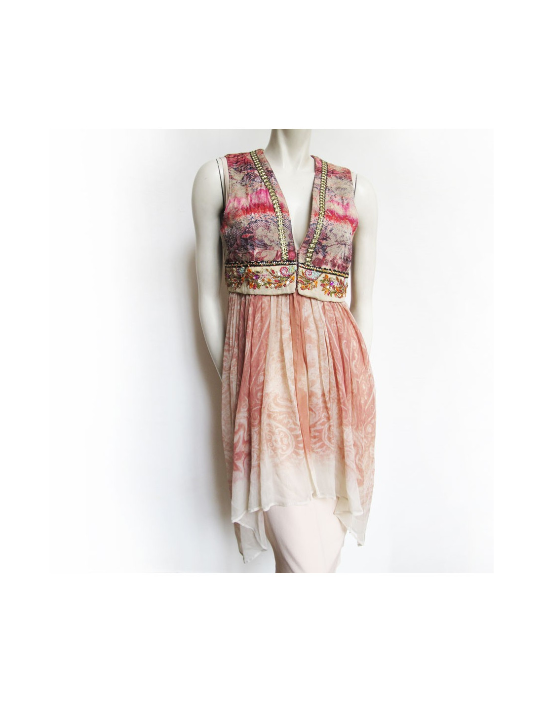 Très original veste gilet longue brodée SHARE SPIRIT dans les tons pastel.