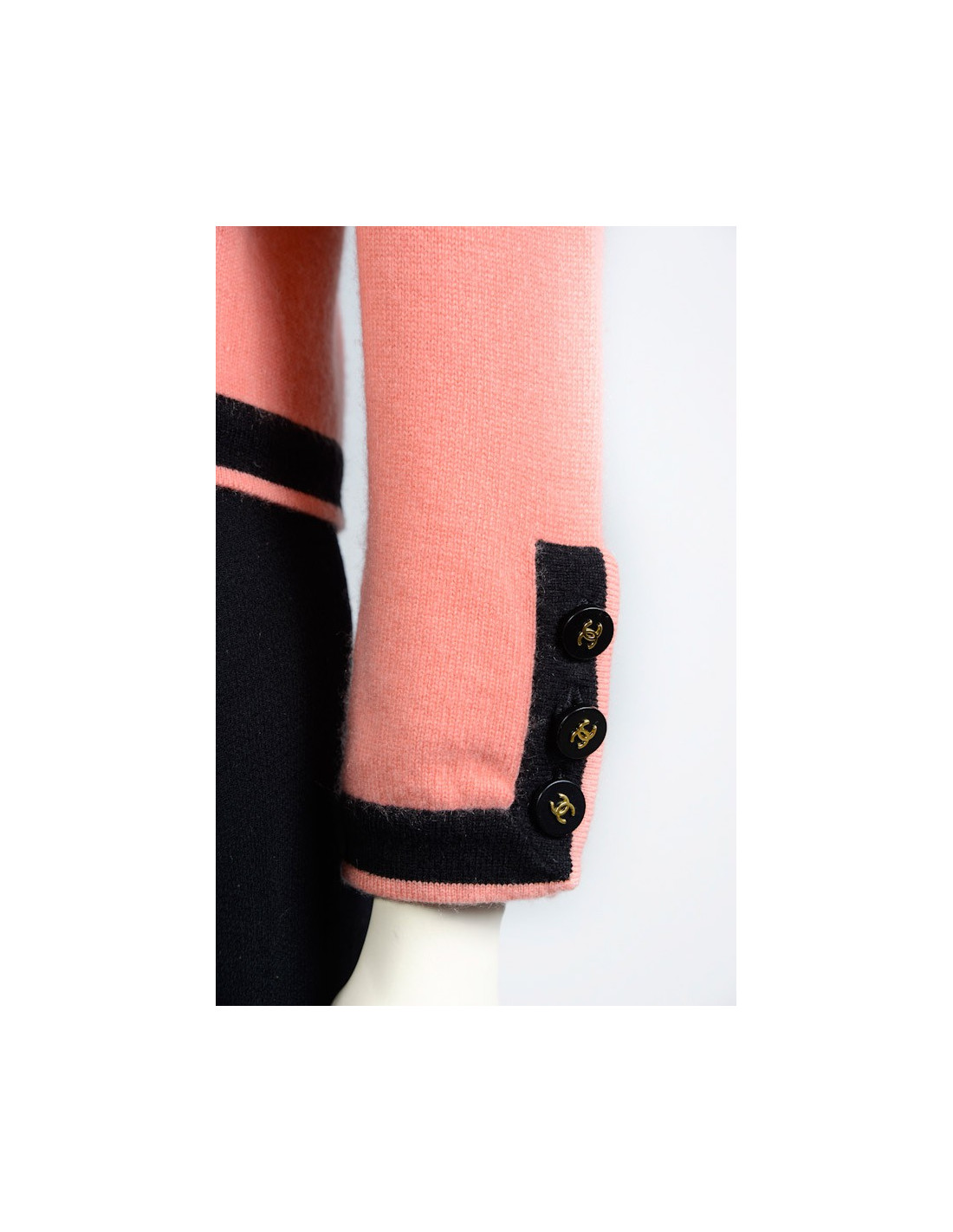 Twin set CHANEL en cachemire pèche et noir