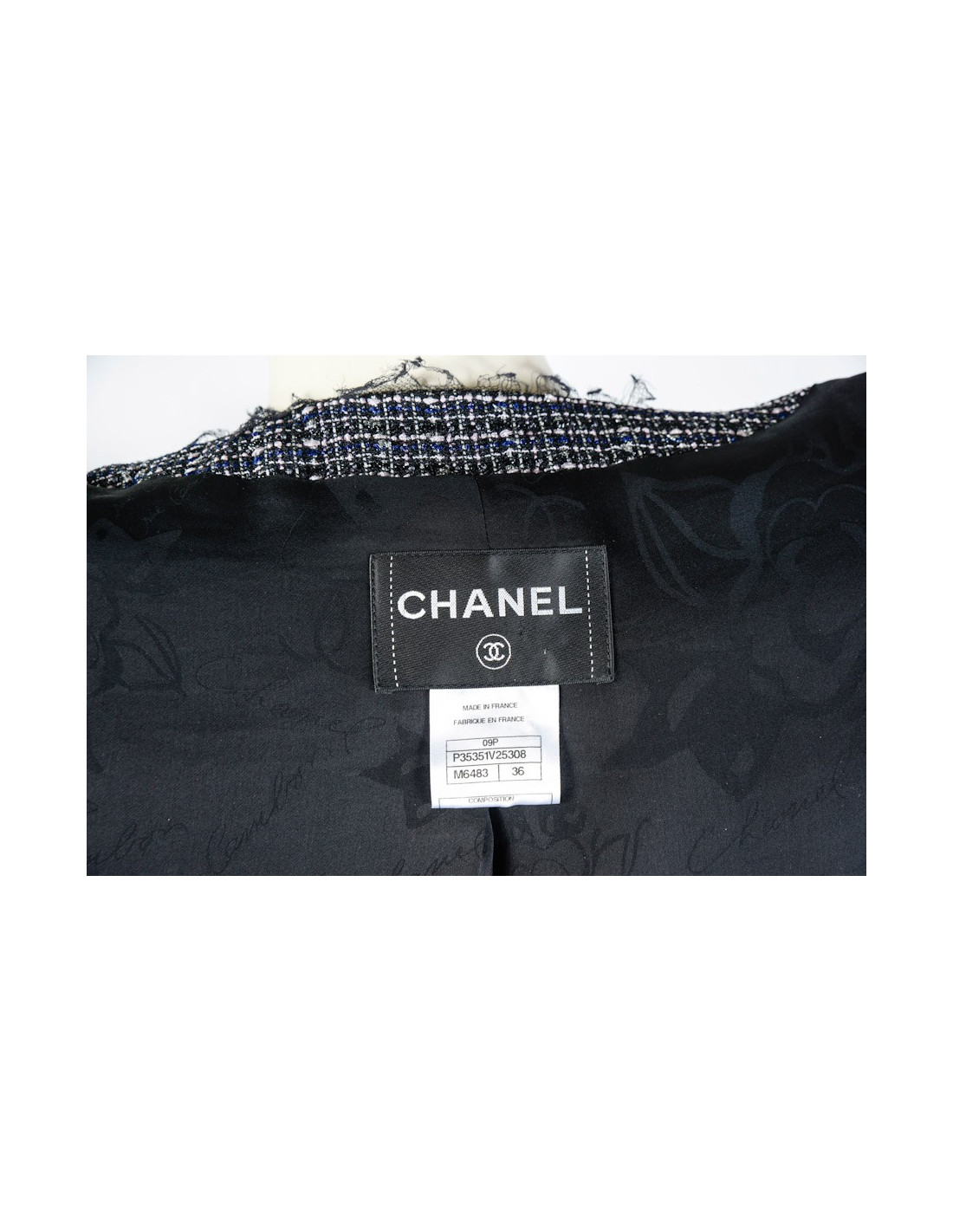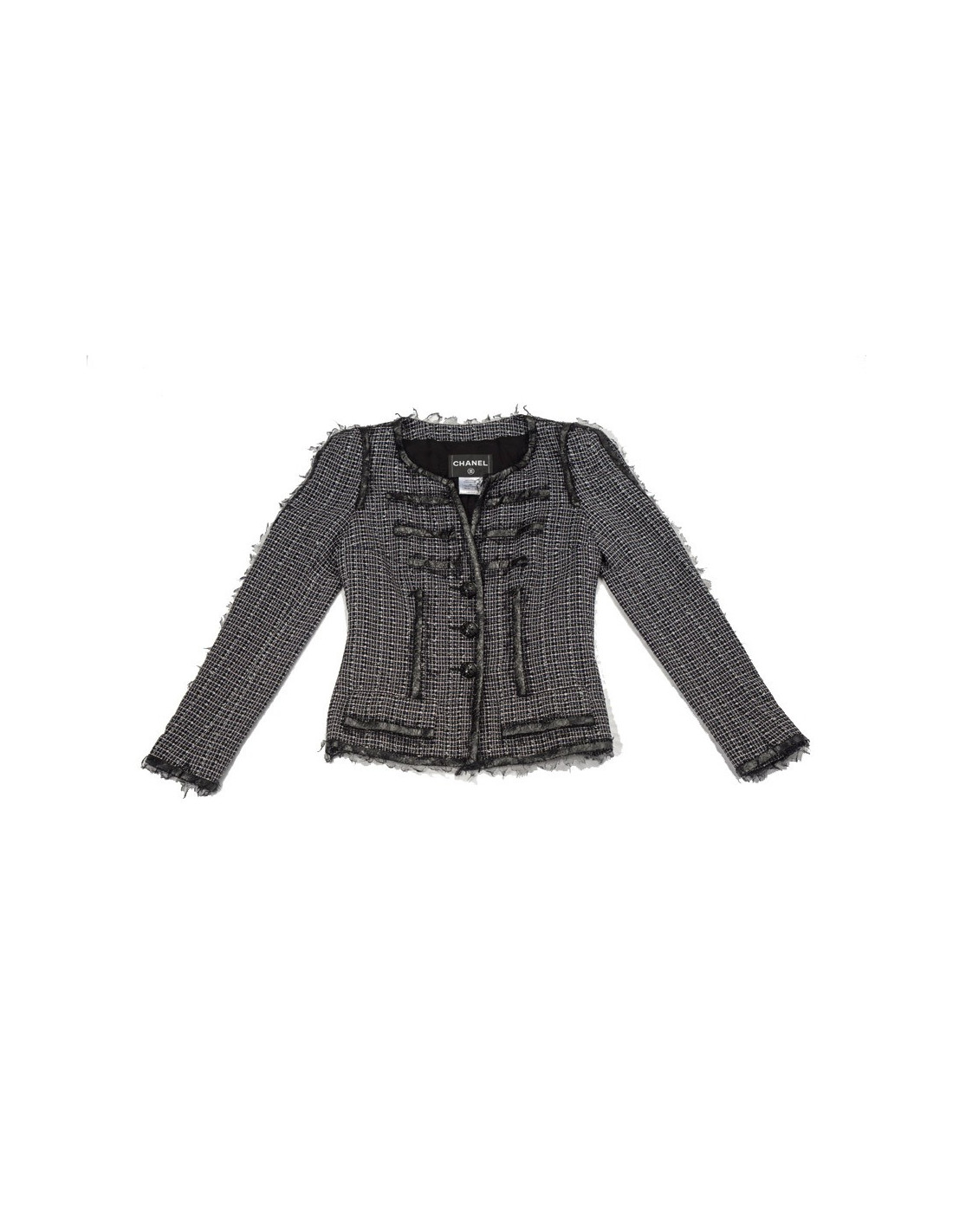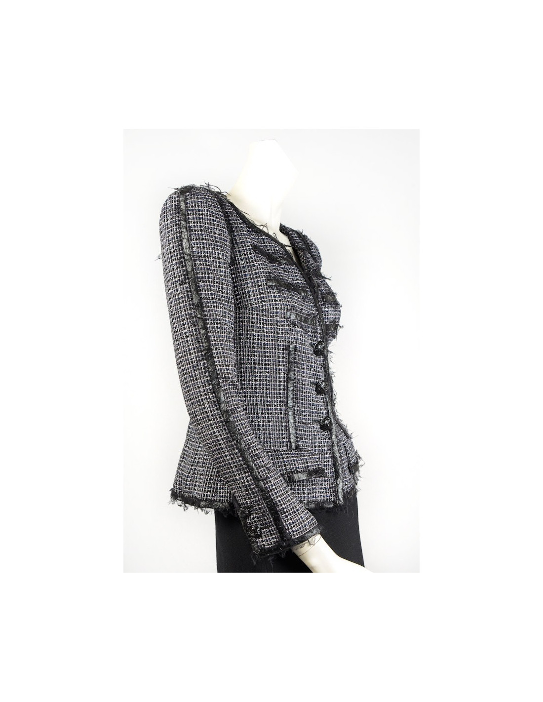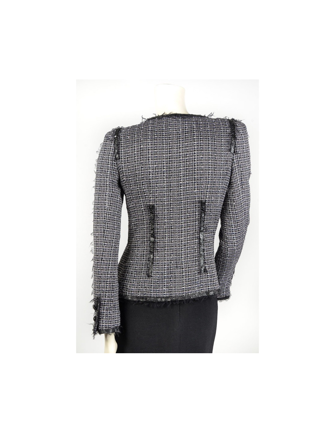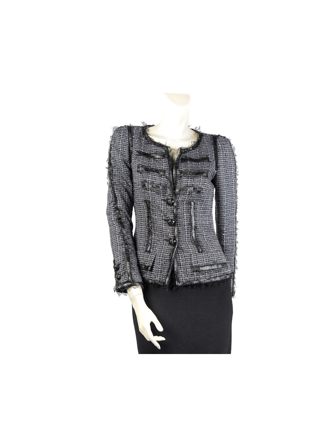 Veste CHANEL T 36 tweed noir et blanc