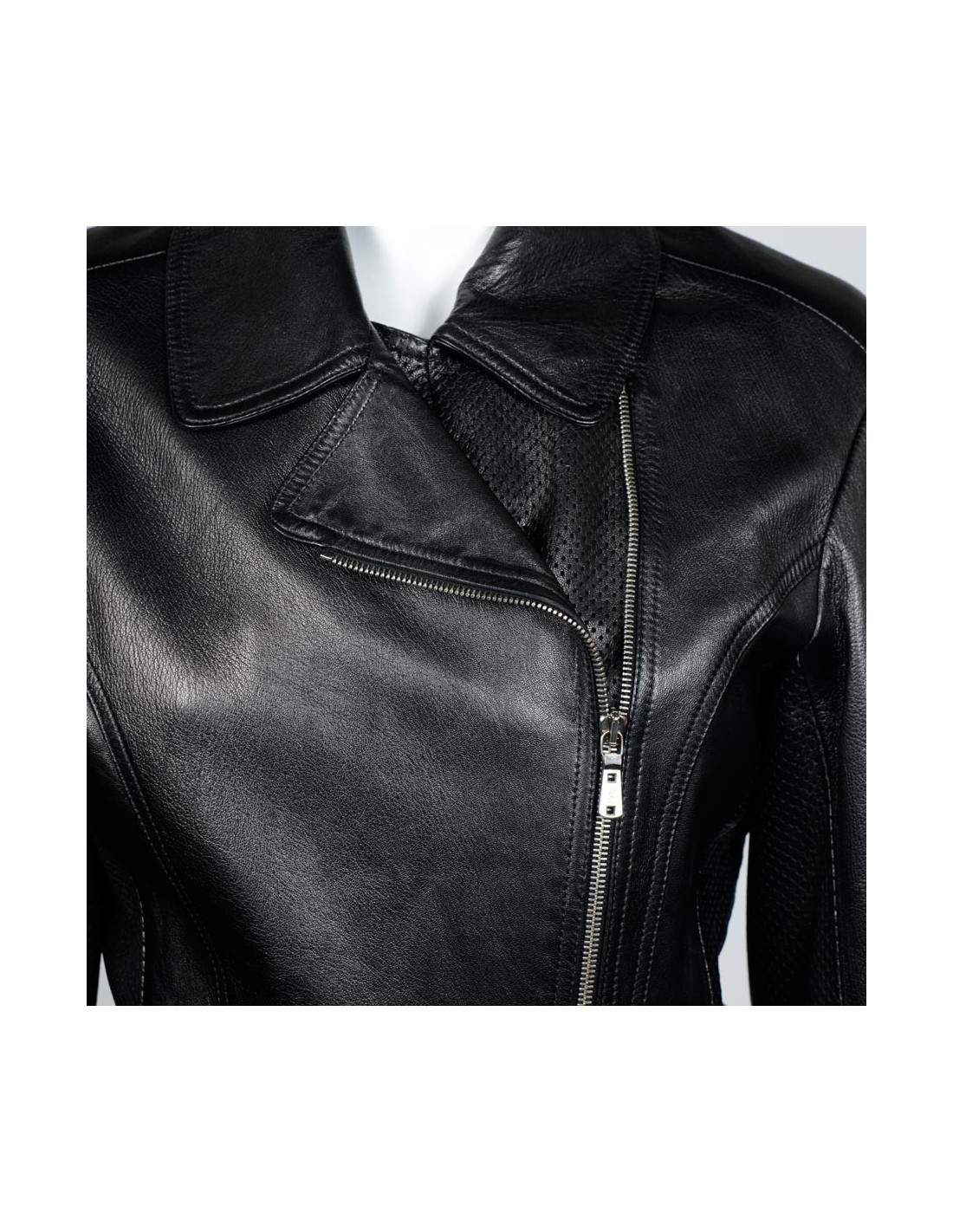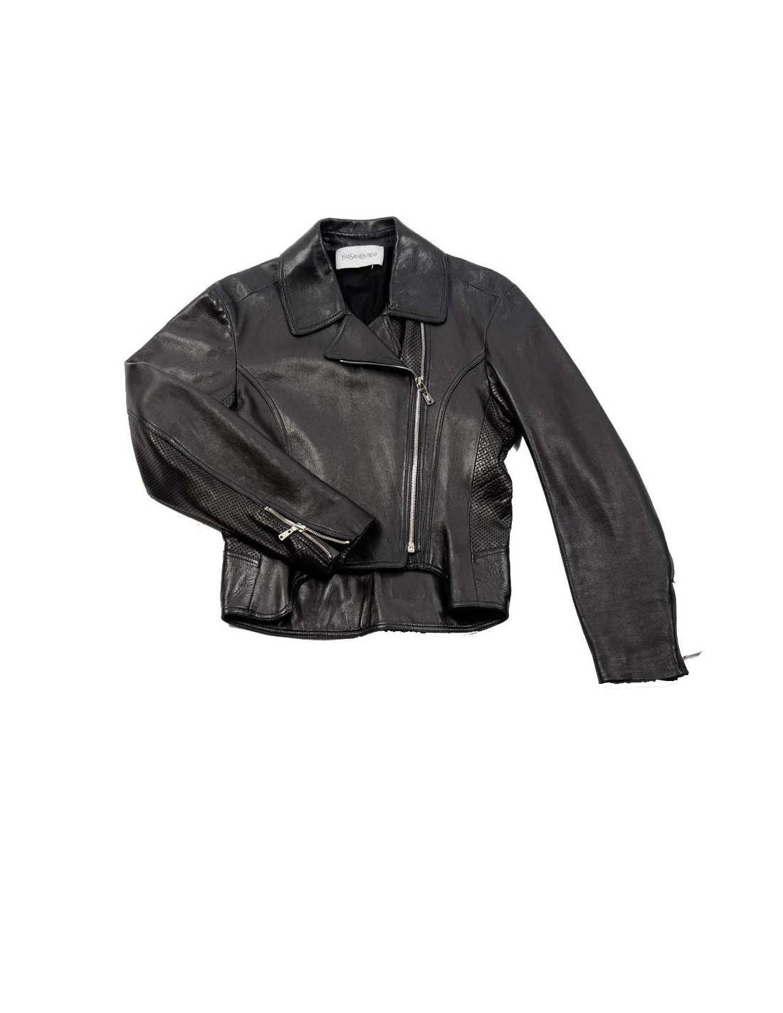 Perfecto en cuir souple noir et parties en cuir perforé, Yves Saint Laurent. Il est en très bon état.