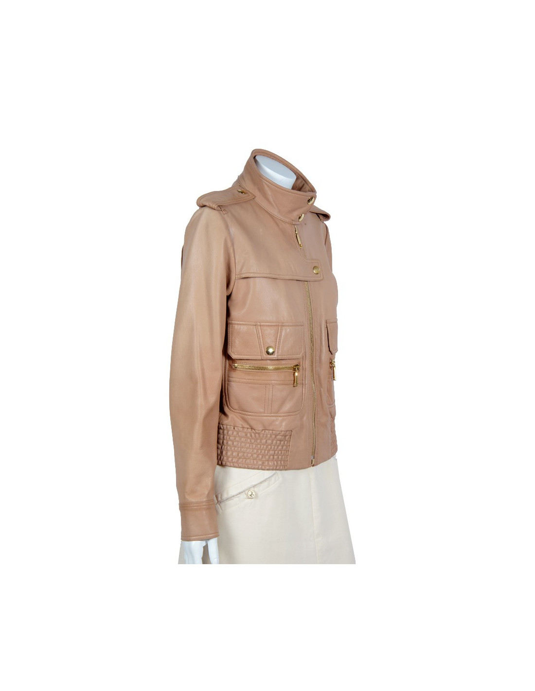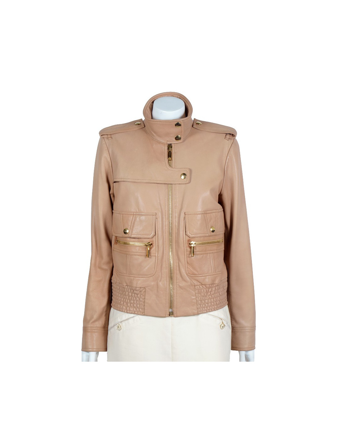 Ravissant blouson Bui par Barbari Bui T40 en cuir de chèvre beige, boutons et fermeture éclair en métal doré.