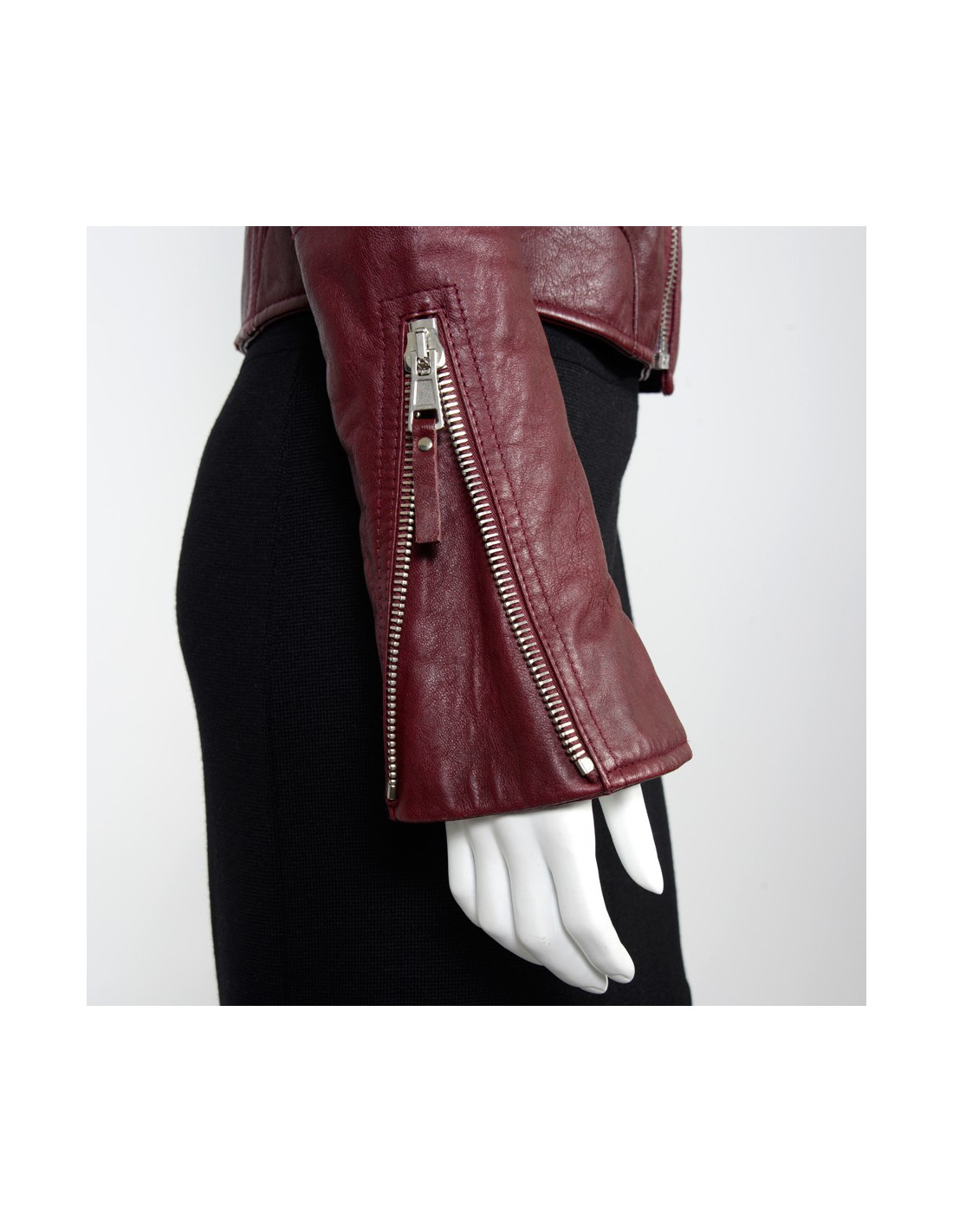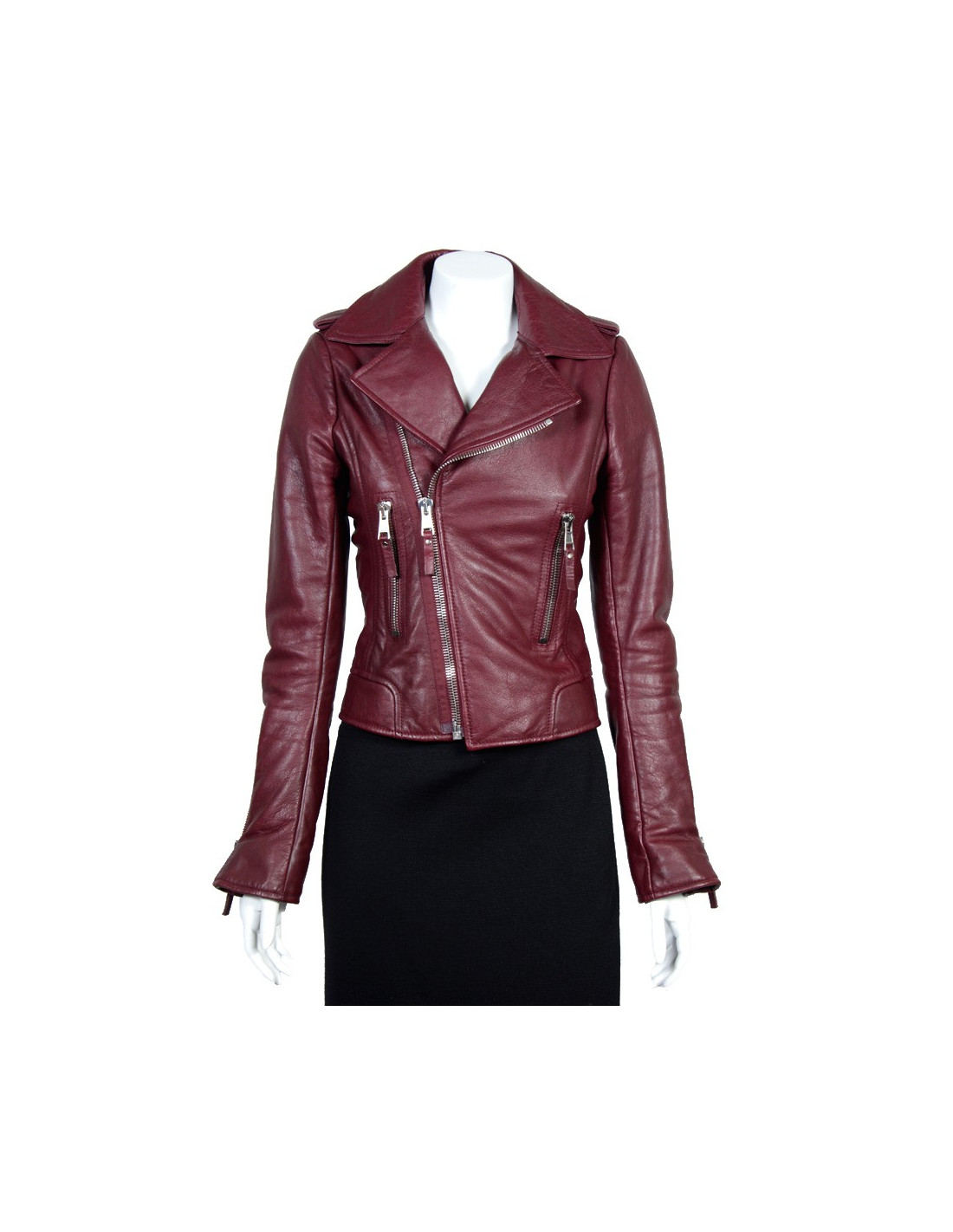 Must have! Perfecto Balenciaga en cuir d'agneau bordeaux. Fermeture zippée au centre. Une poche zippée de chaque côté. Elle peut se porter ouverte pour un effet décontracté ou fermé. En très bon état.