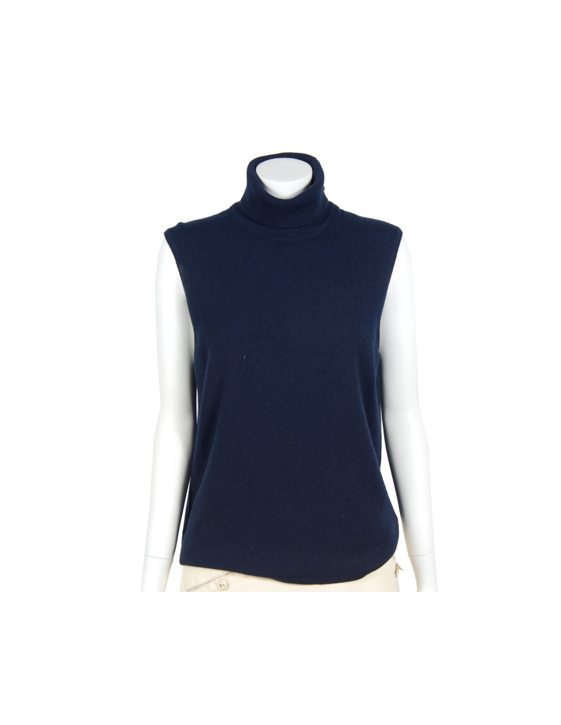 Ravissant Twin-set de la Maison Hermès en cachemire bleu marine. Taille XL. Il se compose d'un col roulé sans manches et d'un gilet avec fermeture zippée en métal argenté. Coupe droite. En très bon état.