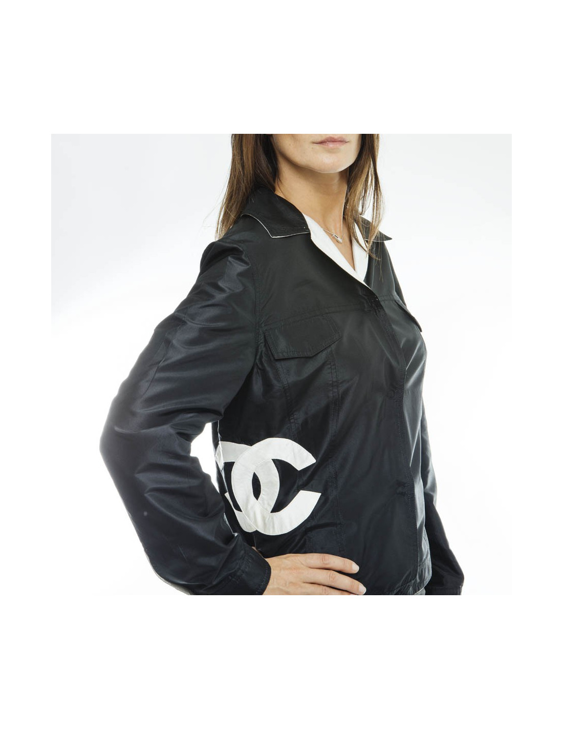 Veste Vintage CHANEL en shantung de soie réversible noir et ivoire.