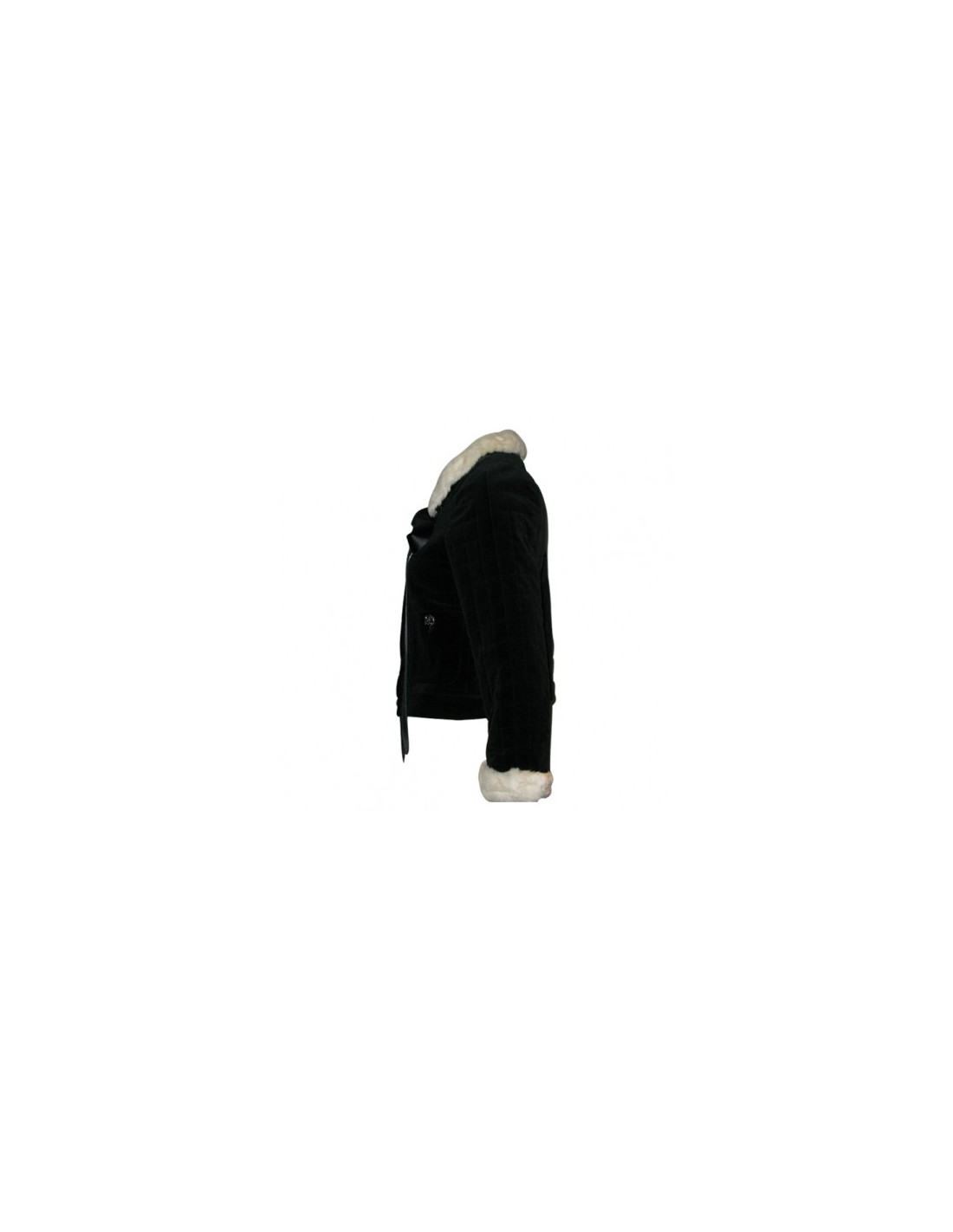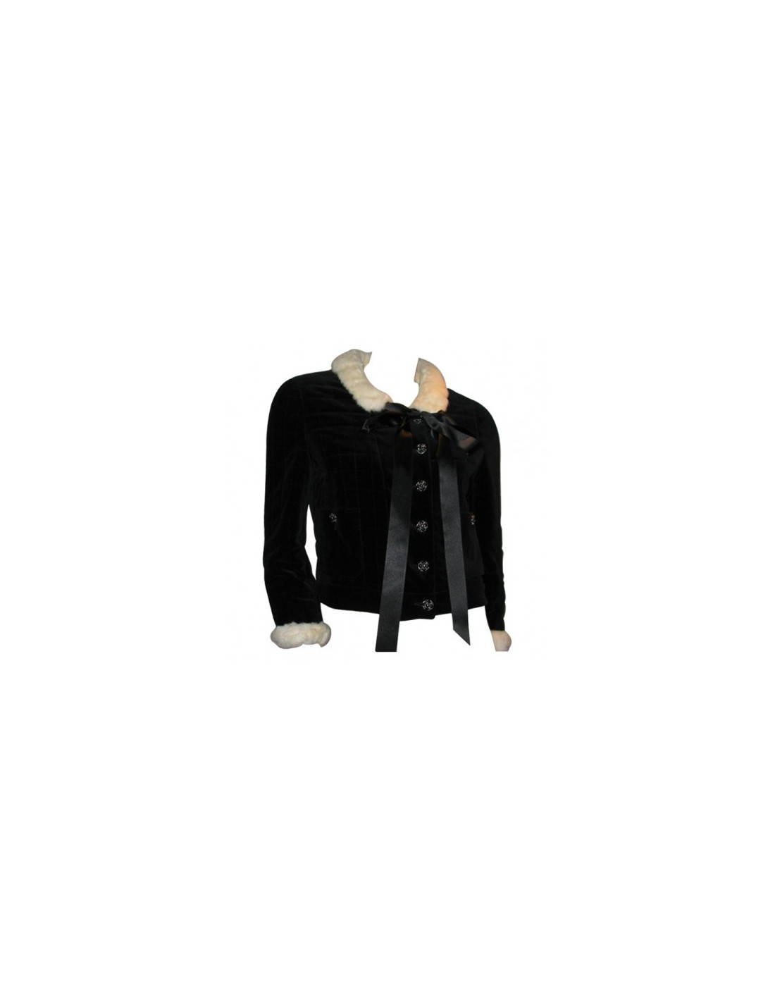 Veste noire velours & col hermine t40 CHANEL