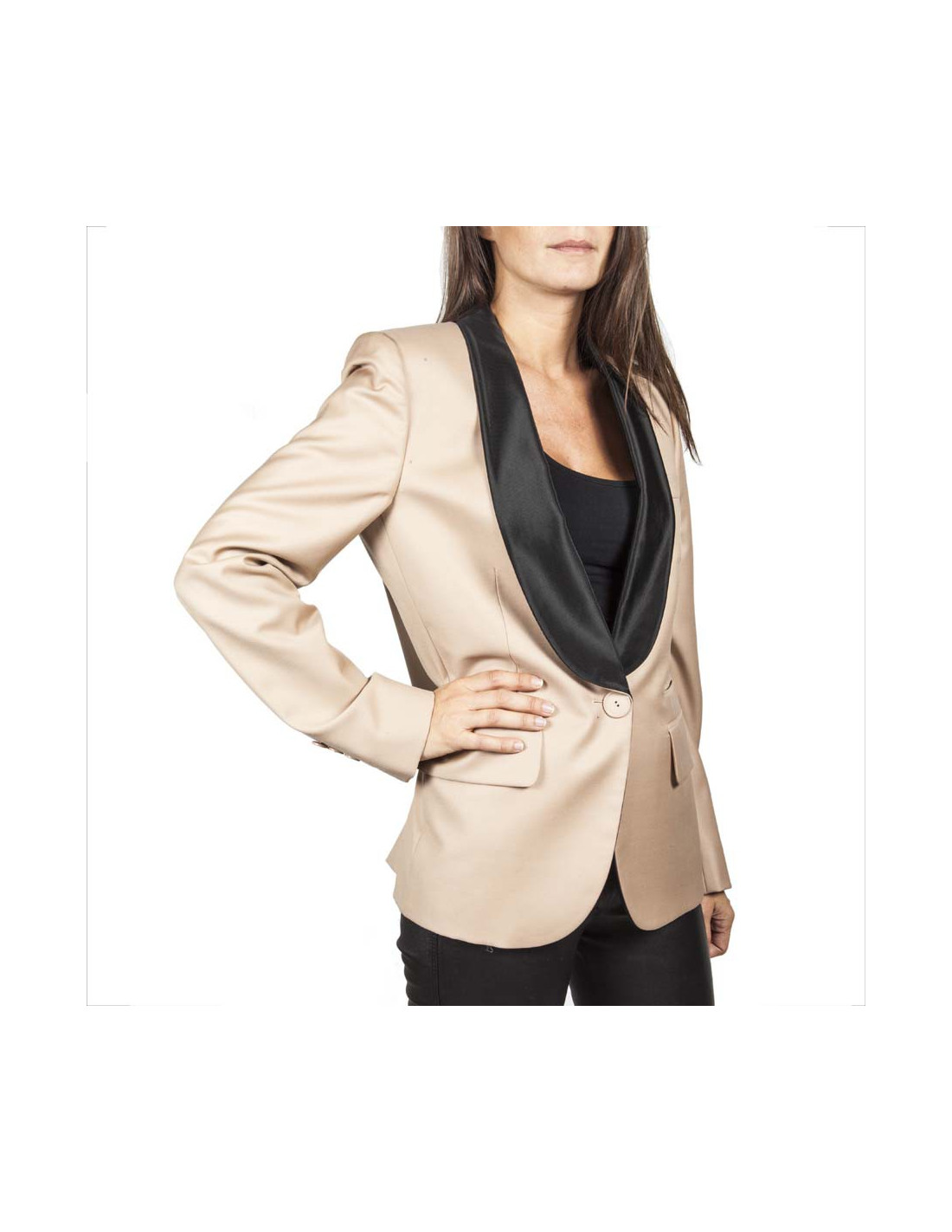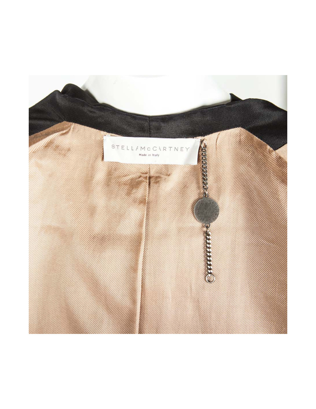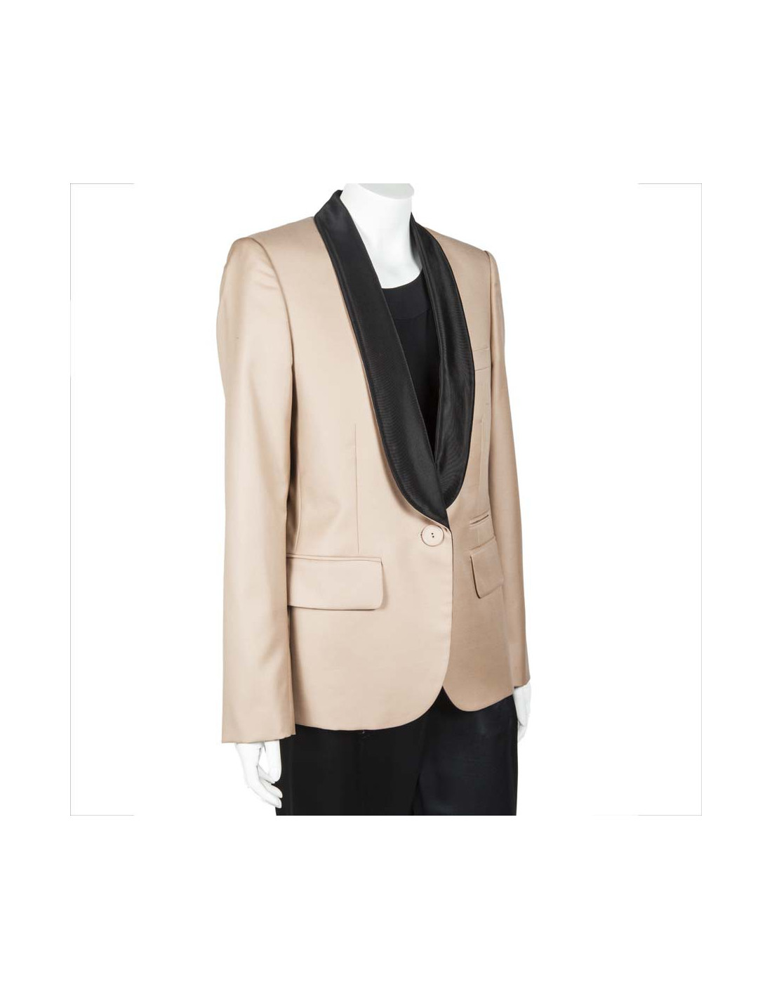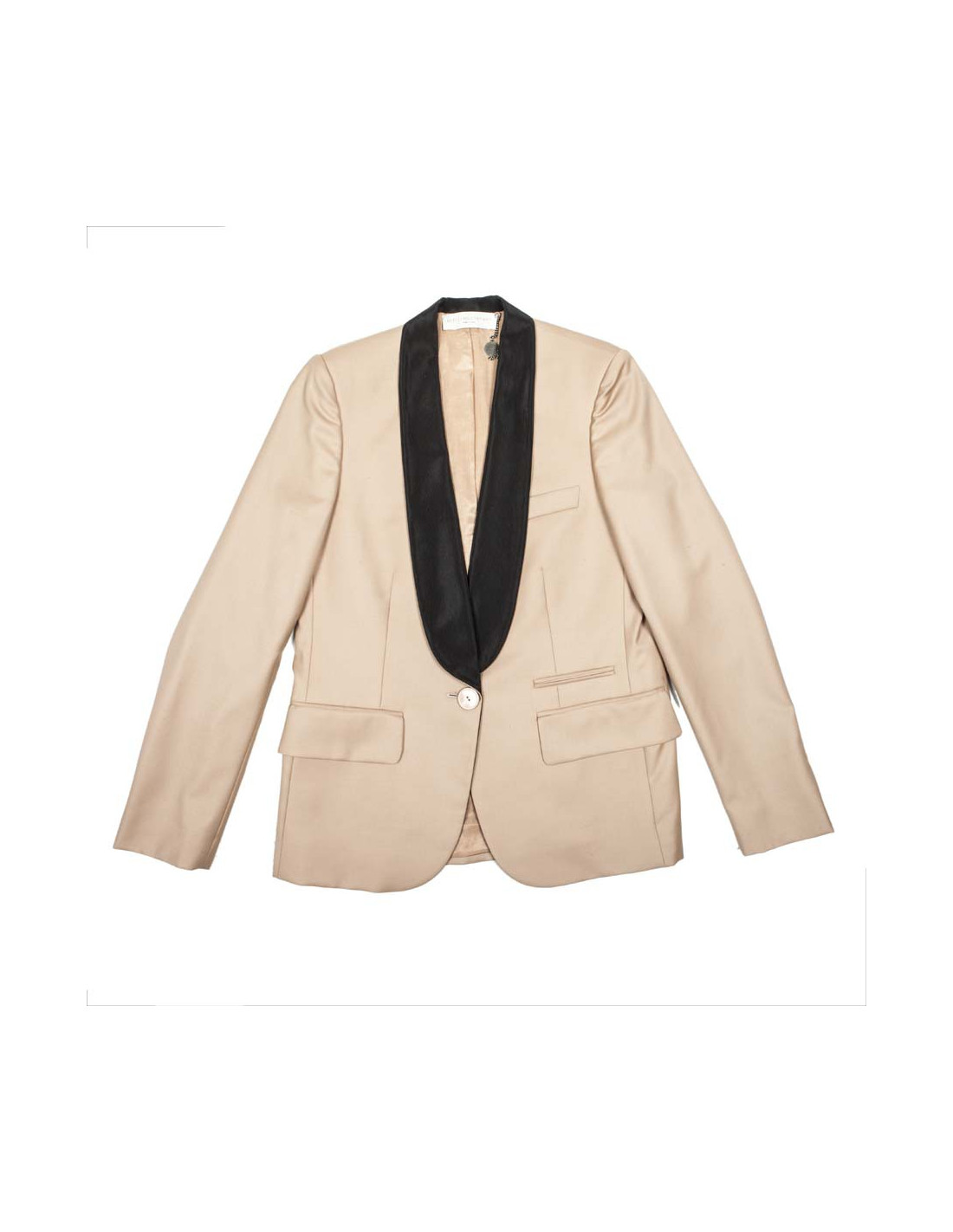 Veste Stella McCartney en laine beige. Taille 42 IT équivaut à un 38 FR. Le col et la doublure sont en coton noire. Fermeture 1 bouton. Coupe cintrée. En très bon état.