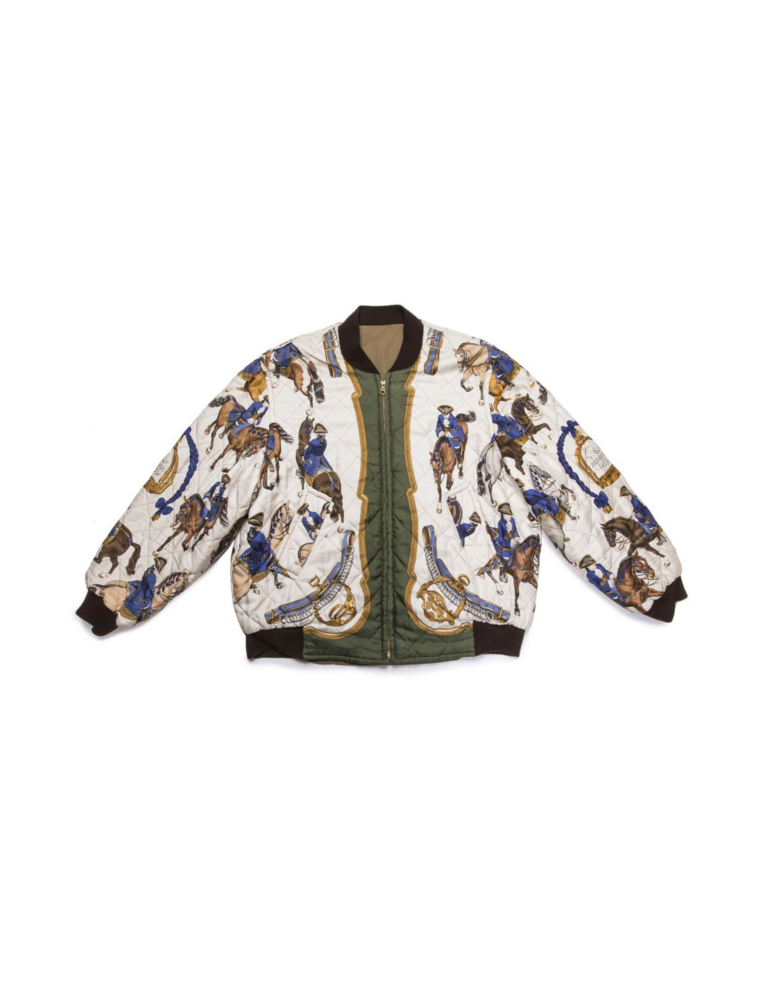 Bombers vintage Hermès taille 48 réversible en soie 'Reprise' par Ledoux et coton kaki. Il a une fermeture à glissière et deux poches fente.