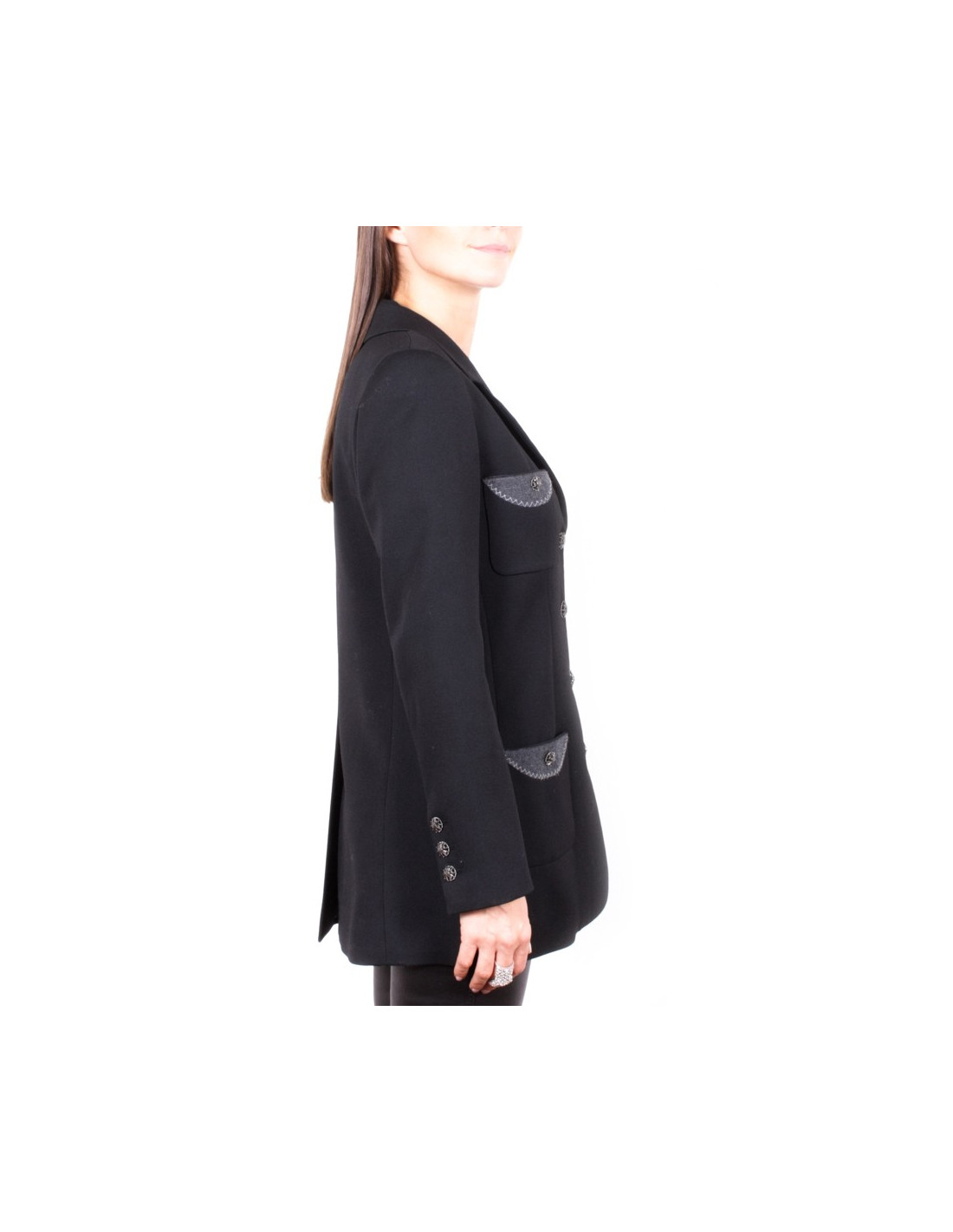 Elle se ferme à l'aide de 4 boutons en métal argenté et émaillés noirs siglés CC.