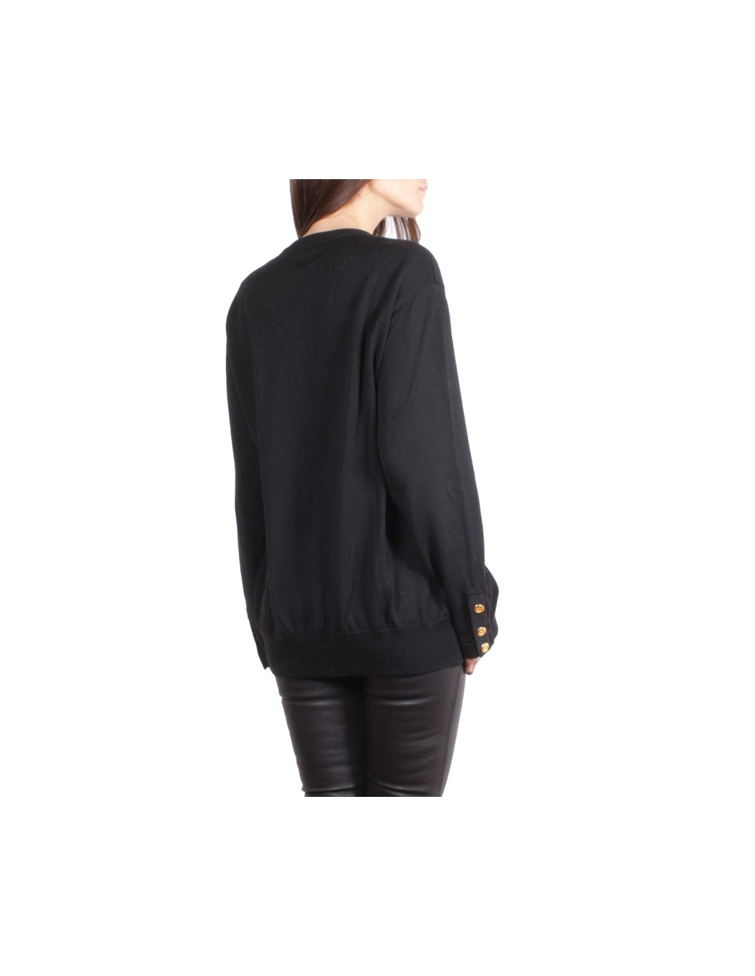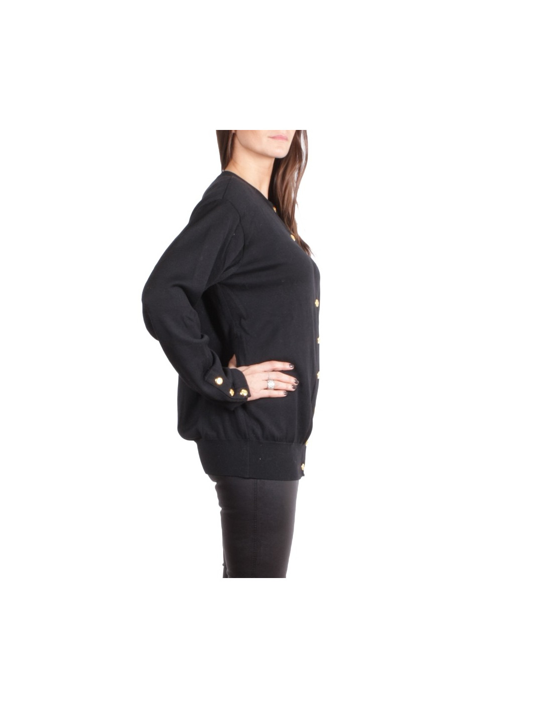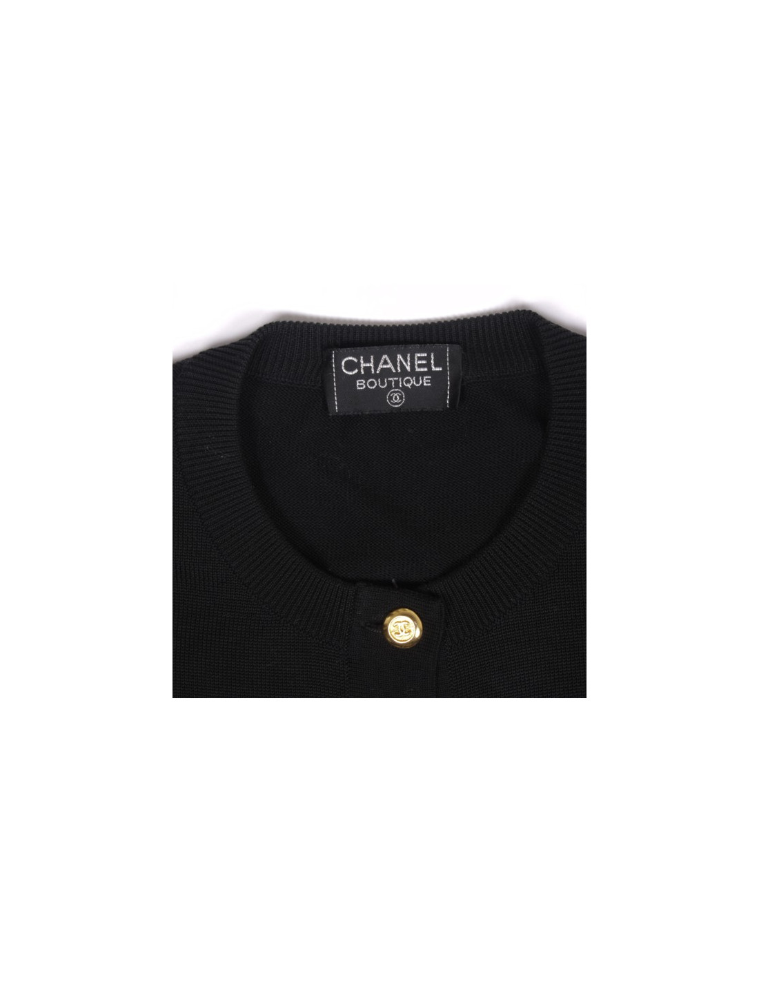 Joli cardigan CHANEL vintage en coton noir, il se ferme à l'aide de superbes boutons dorés siglés CC.