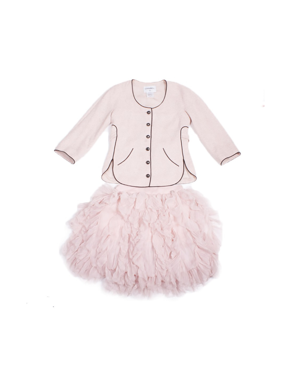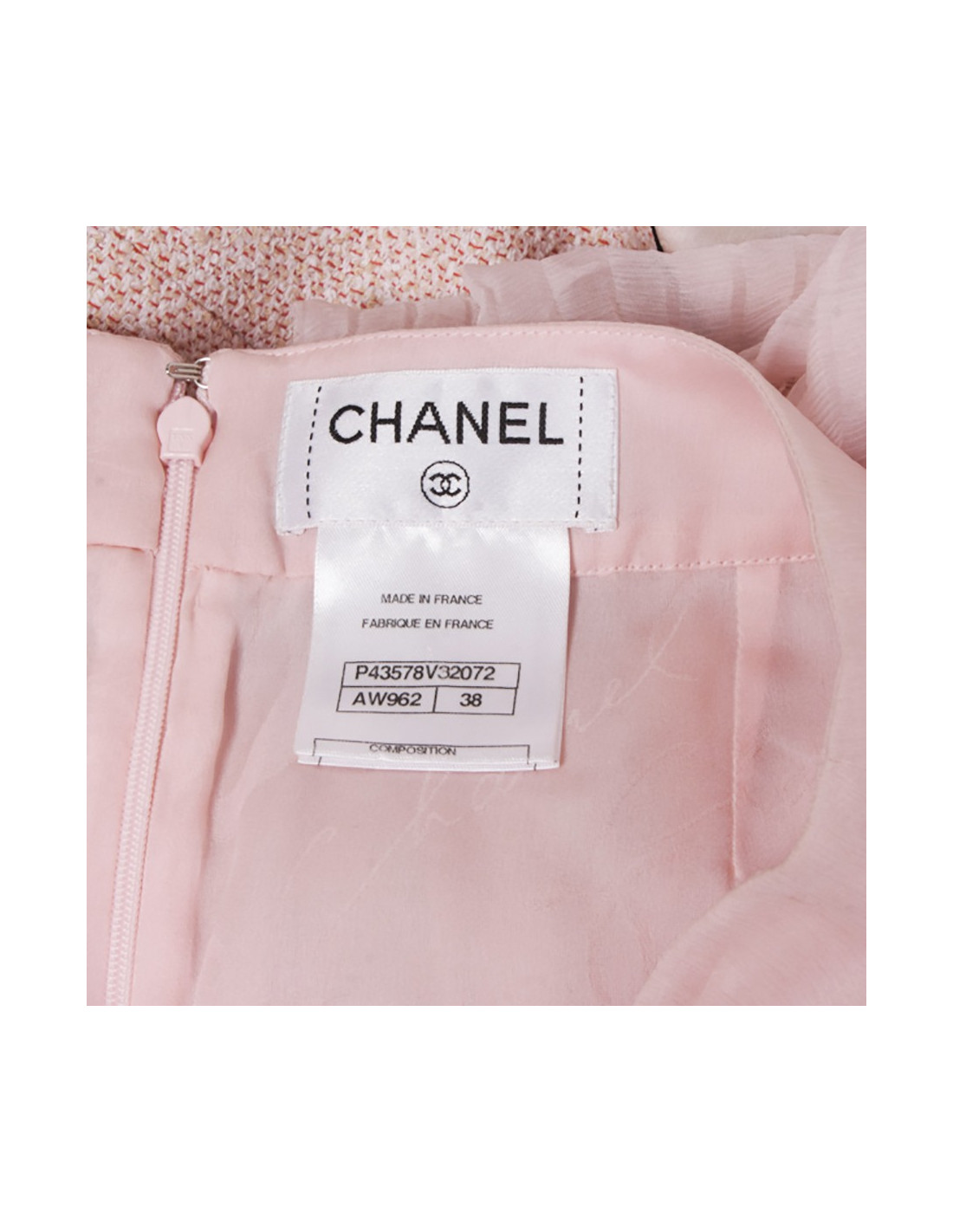 Ensemble CHANEL T 38 FR tweed rose et jupe en mousseline de soie