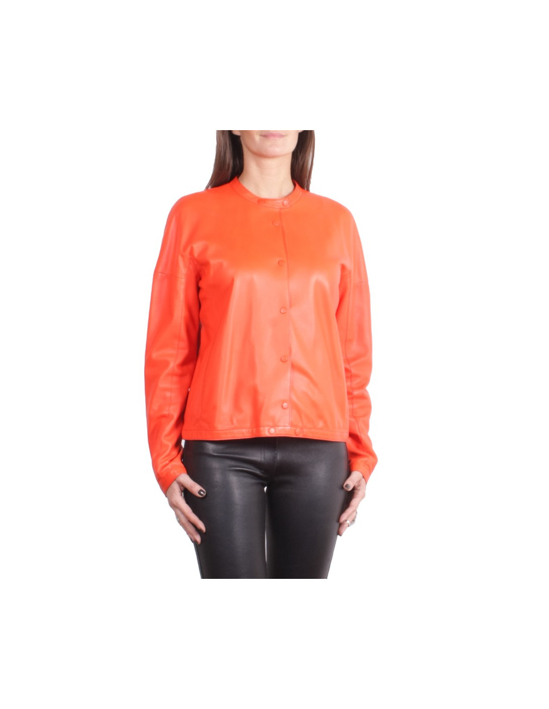 Superbe blouson Hermès en cuir d'agneau plongé couleur orange Hermès, en parfait état. (porté une fois).