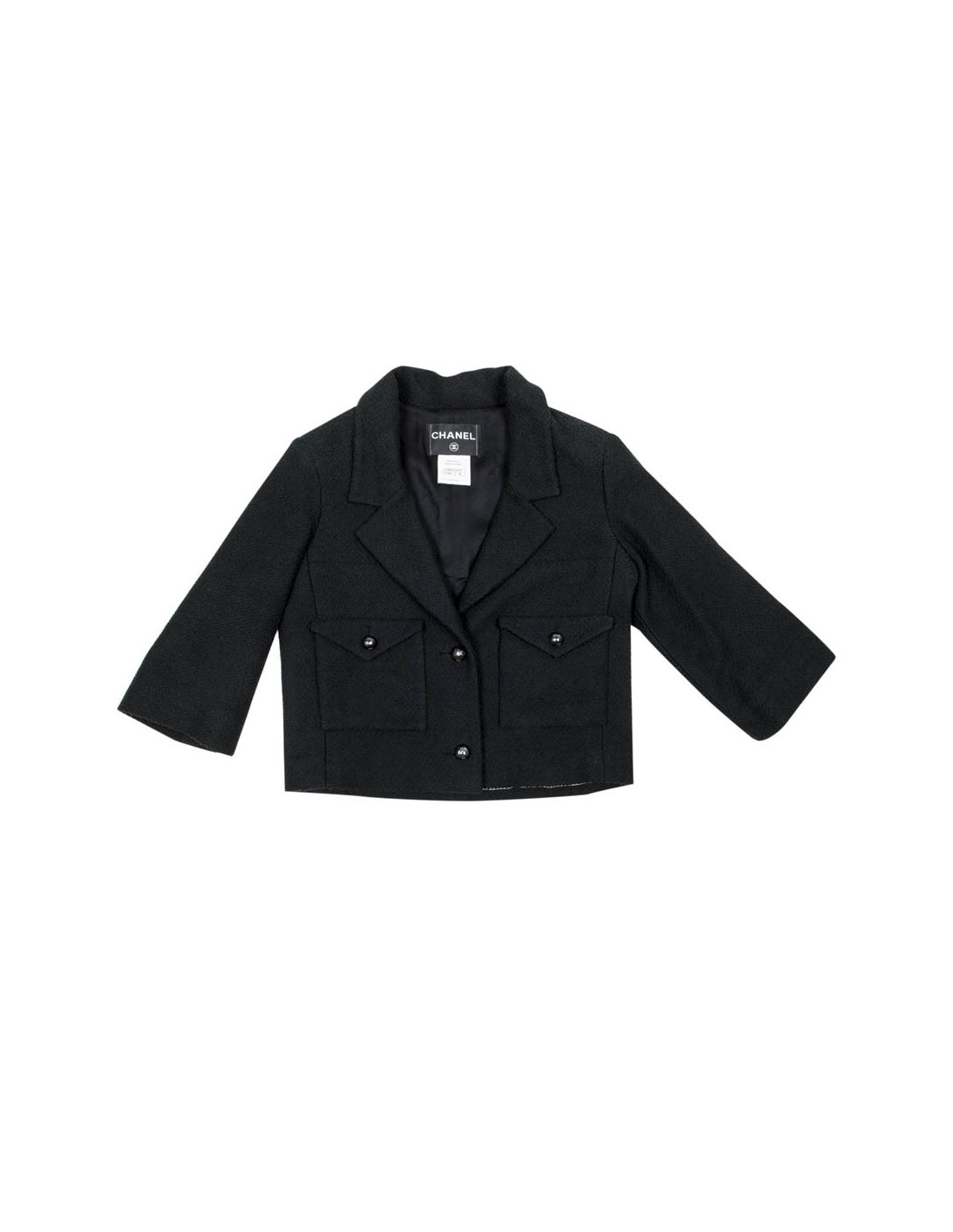 Jolie veste courte Chanel taille 36 FR, noire. En parfait état et indispensable dans son dressing. Manches mi-longues et doublure en soie noire monogramme.