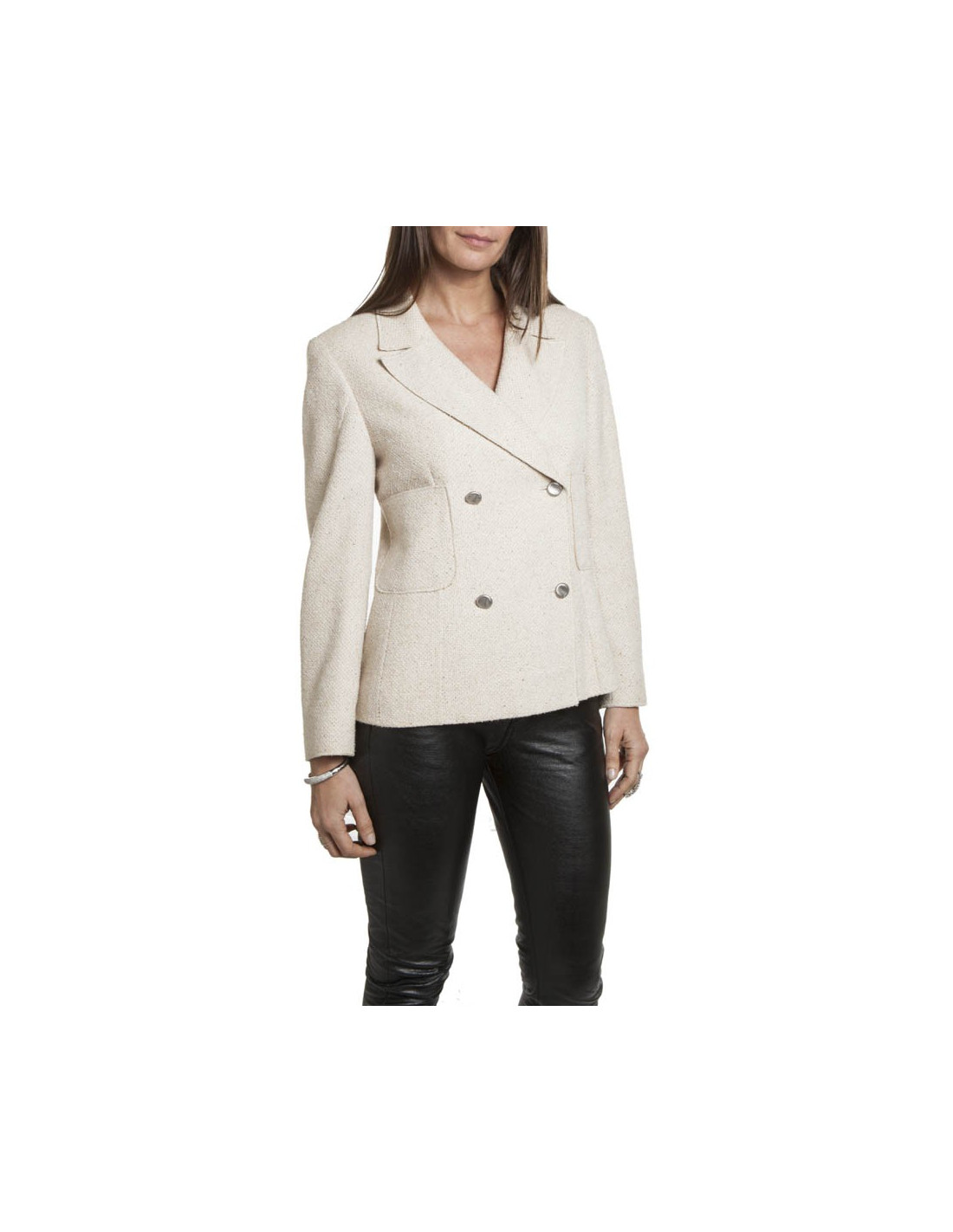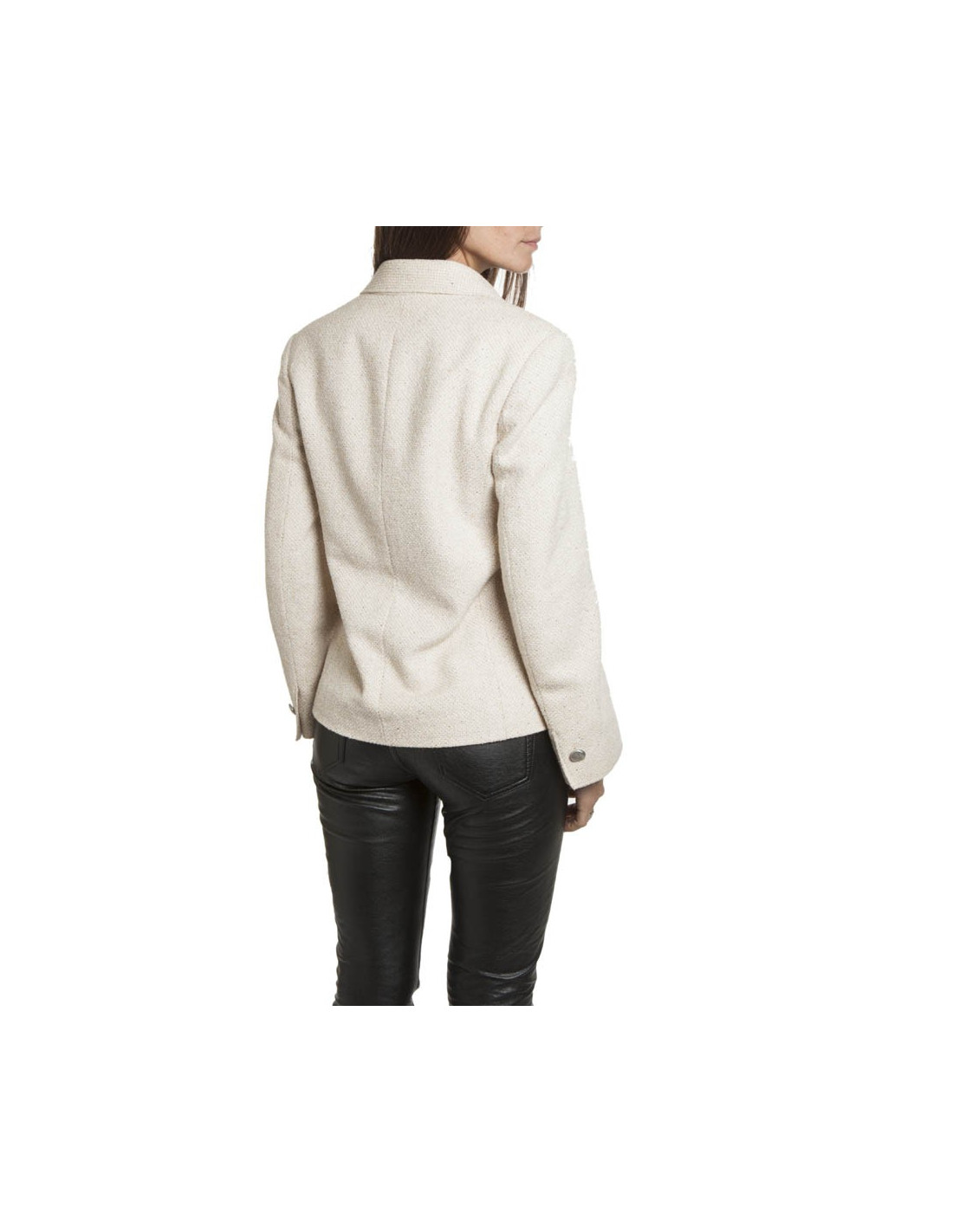 Veste CHANEL T 38 en tweed beige croisée