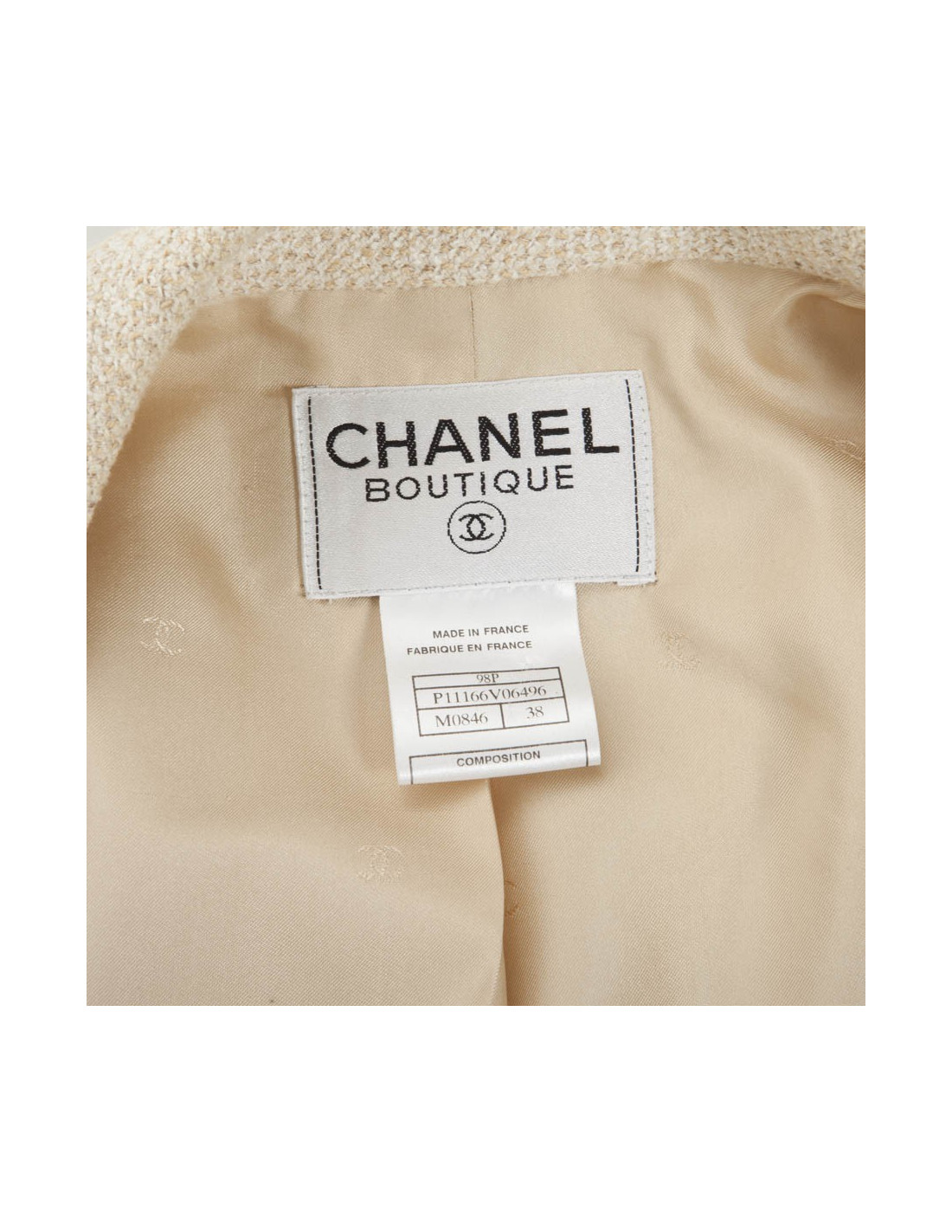 Veste CHANEL Collection Printemps 98 en tweed de coton et laine beige croisée.