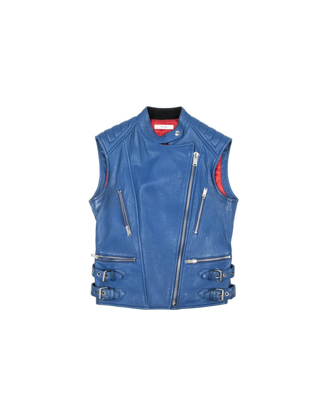 Veste sans manches CELINE en cuir bleu T 40 fr
