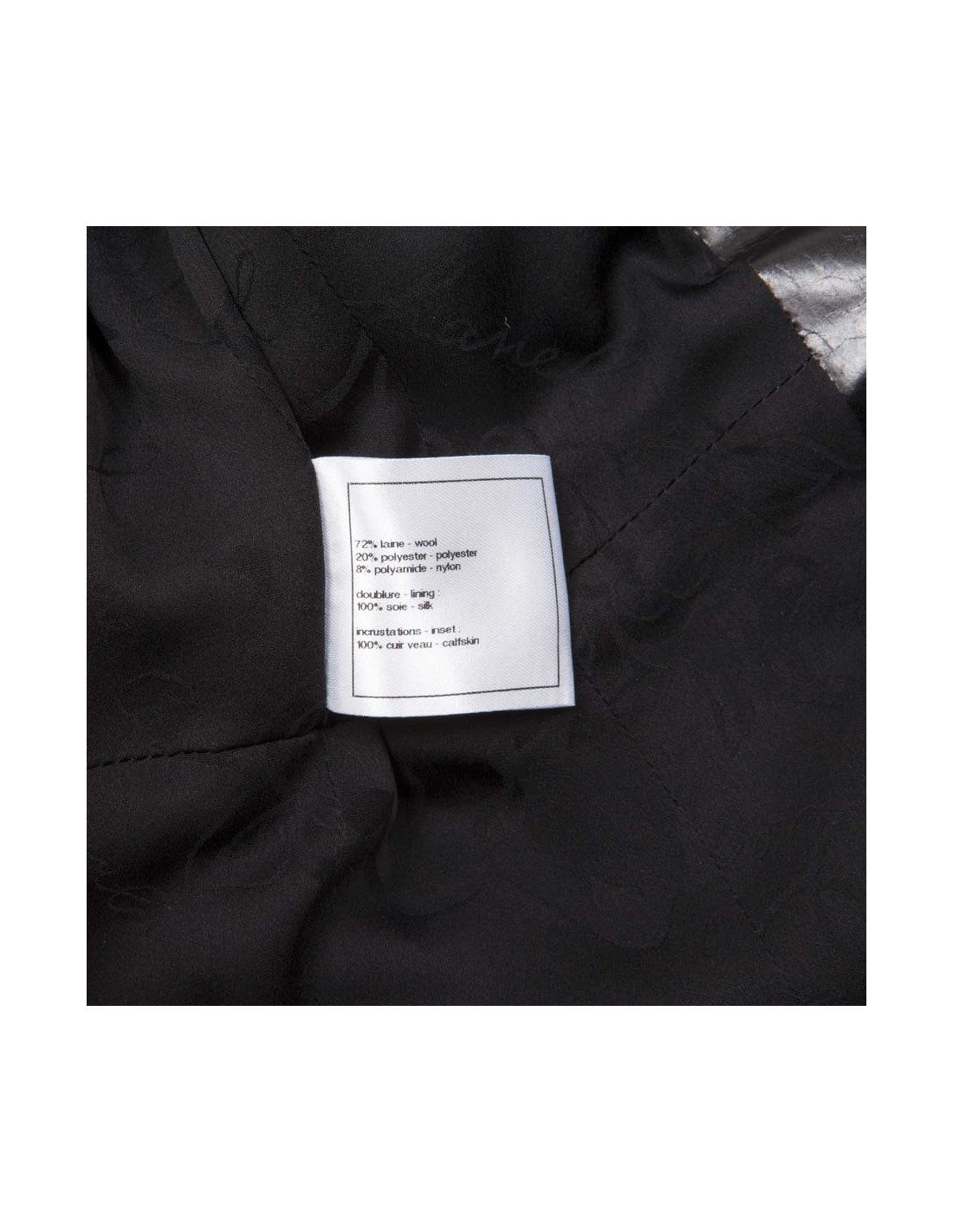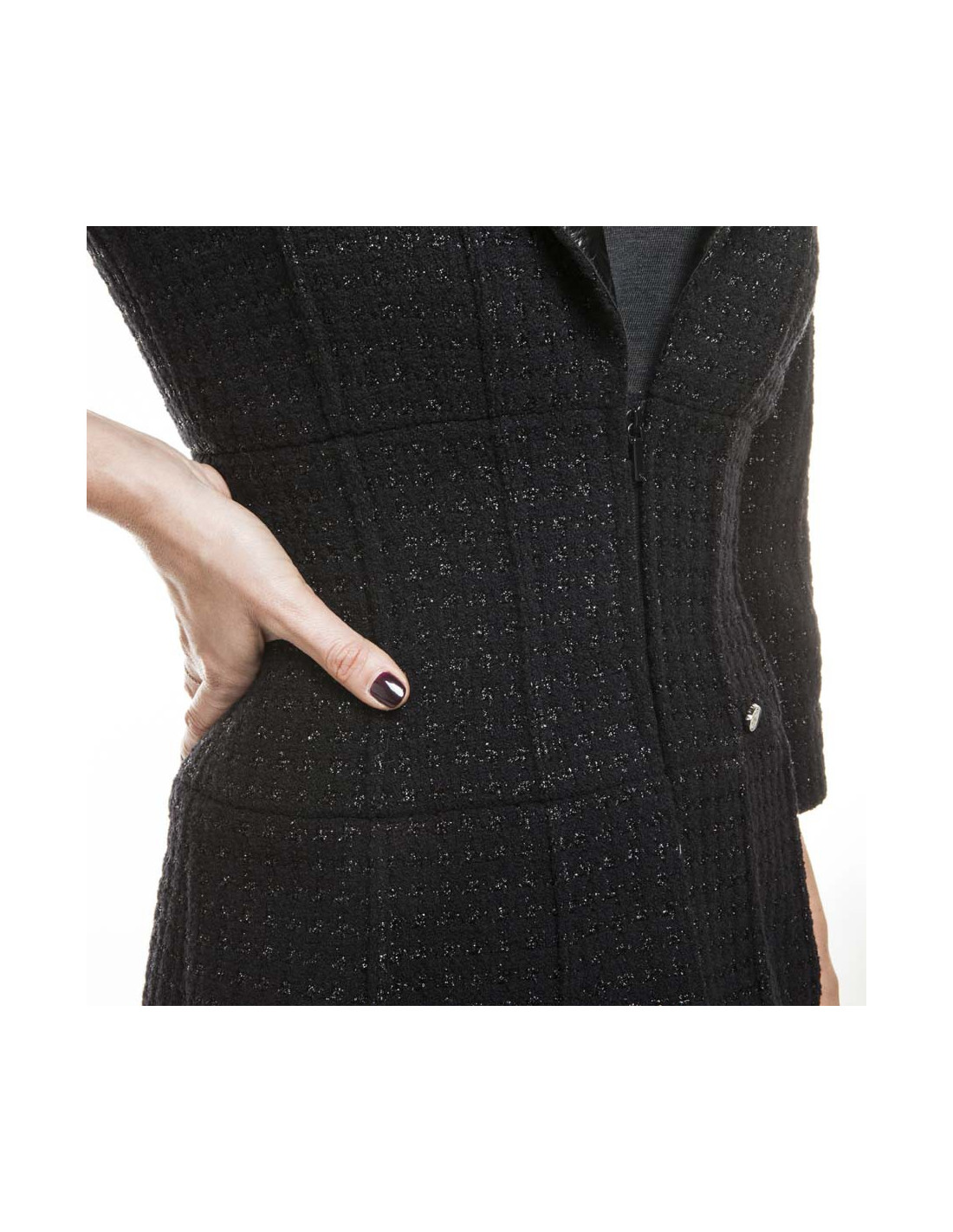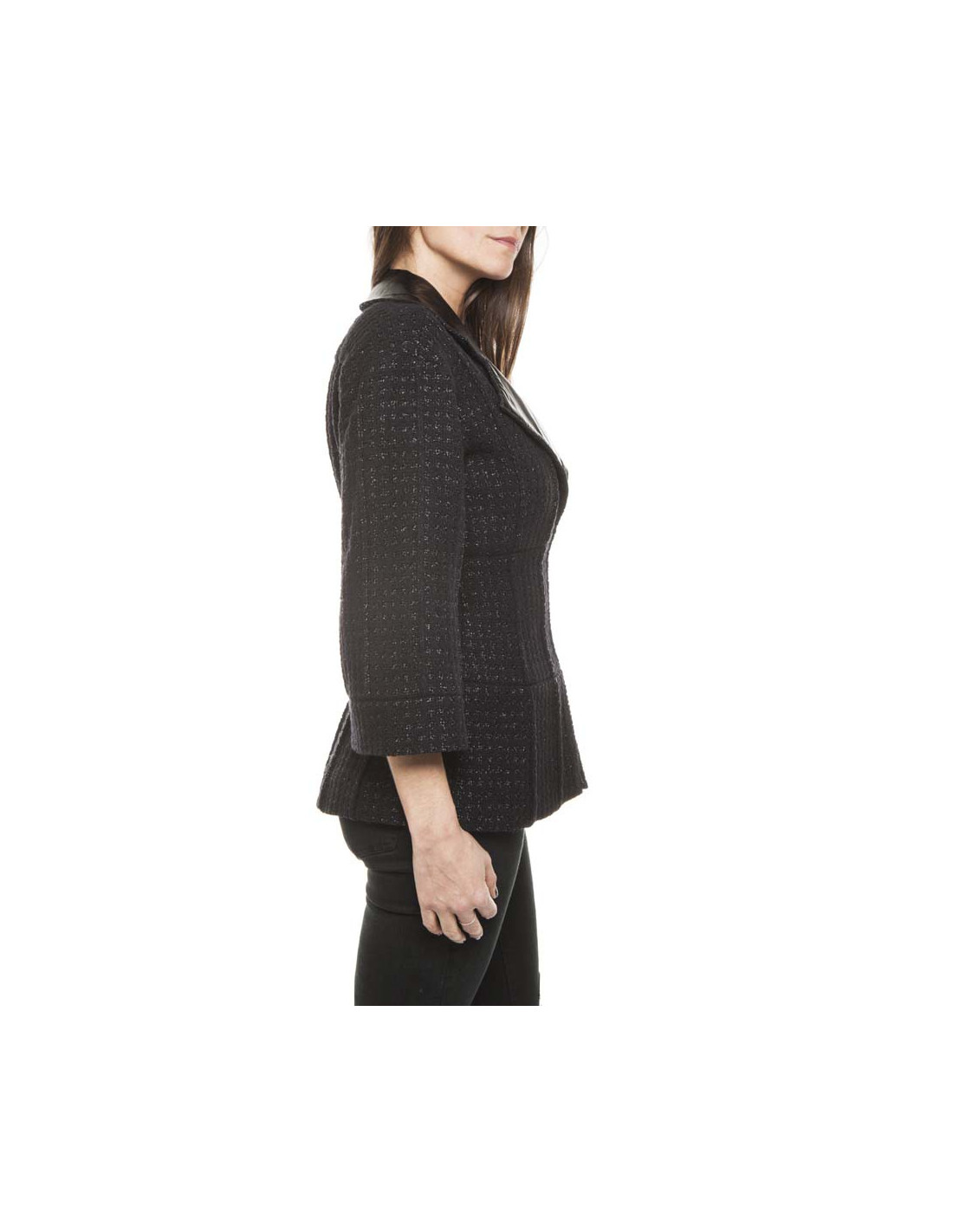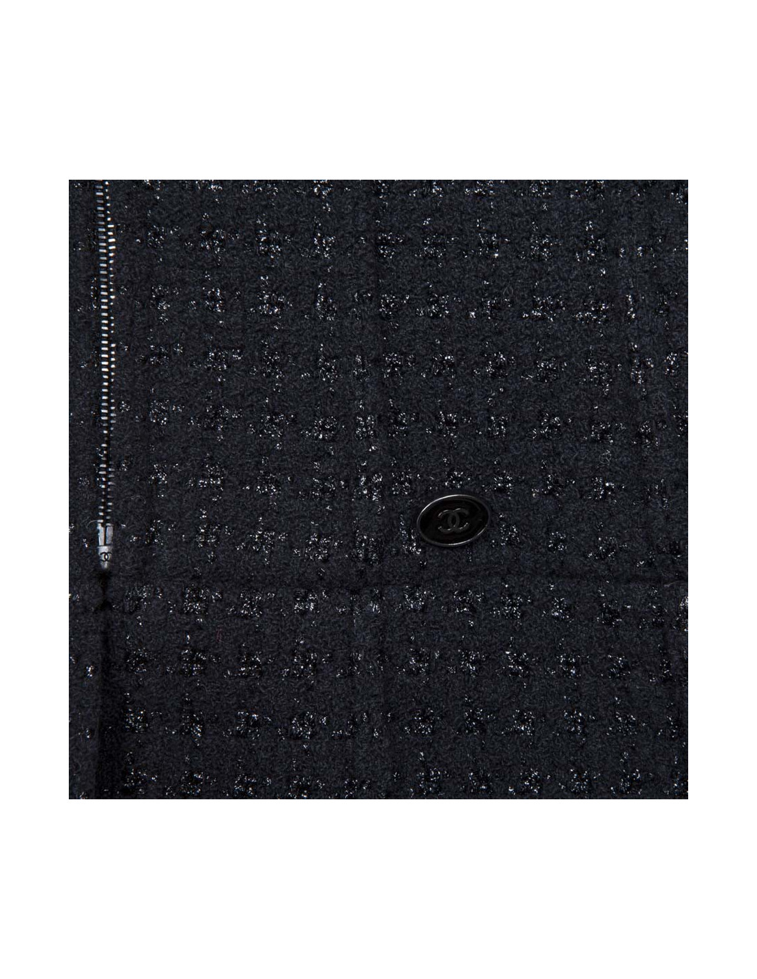 Jolie veste Chanel en tweed noir et fils brillants, avec un col en polyester.