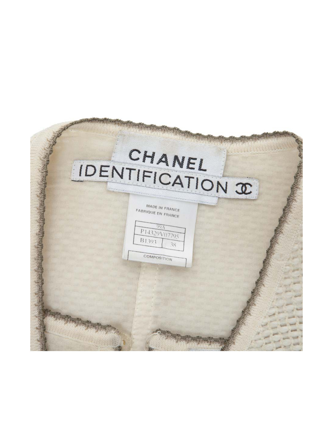 Twin-set CHANEL IDENTIFICATION beige en laine - Détails