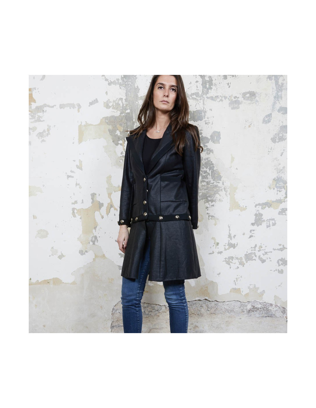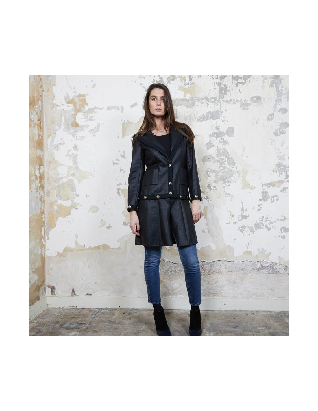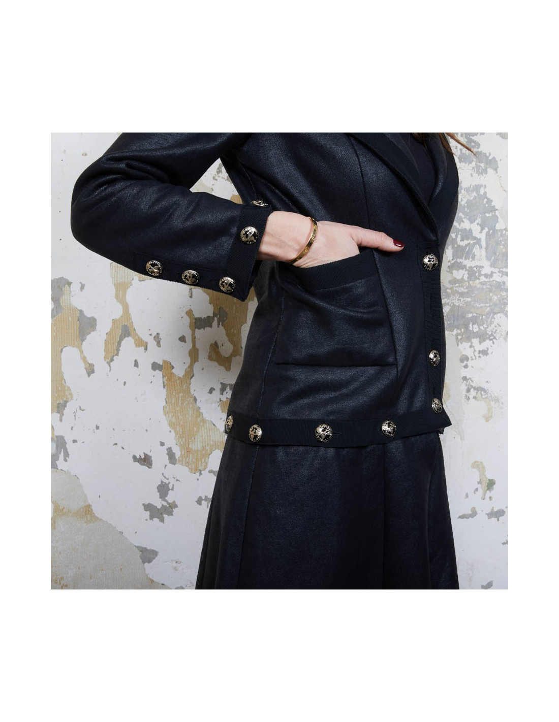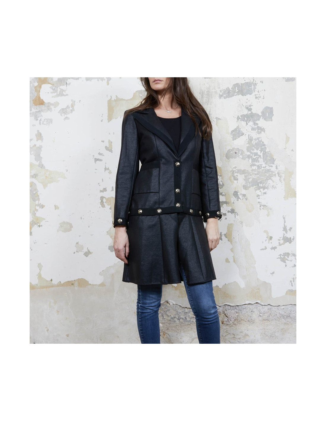 Veste robe Chanel. Lorsque l'on détache la partie basse grâce à de jolies boutons avec l'inscription "Chanel Coco line", elle devient une veste. Made in France