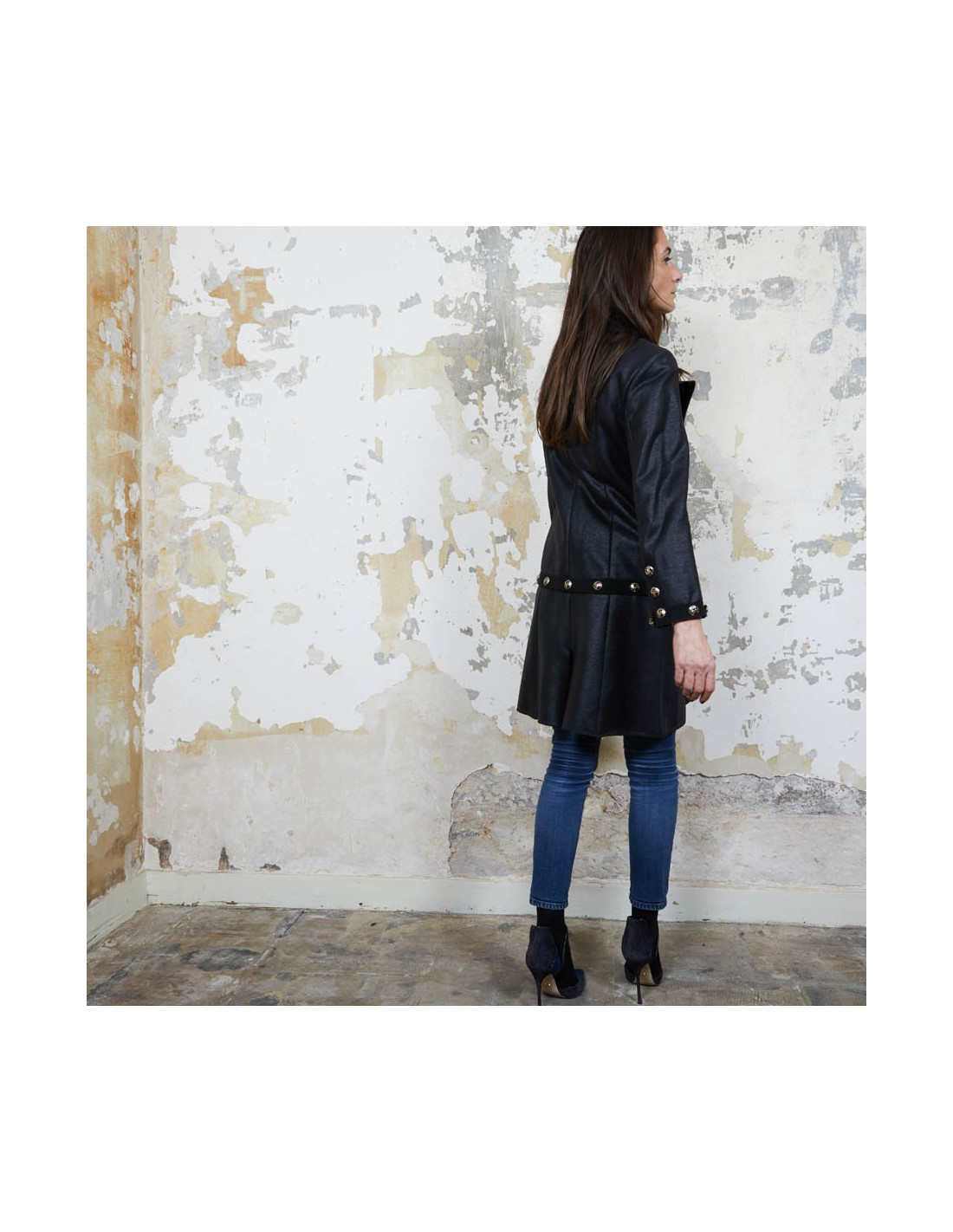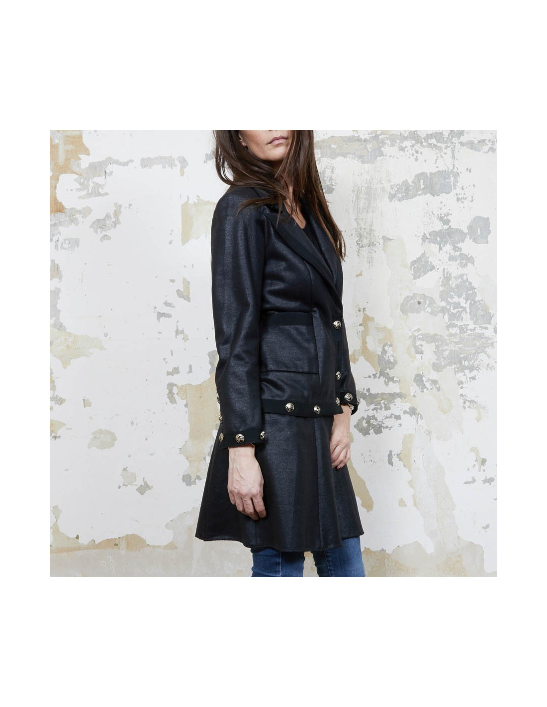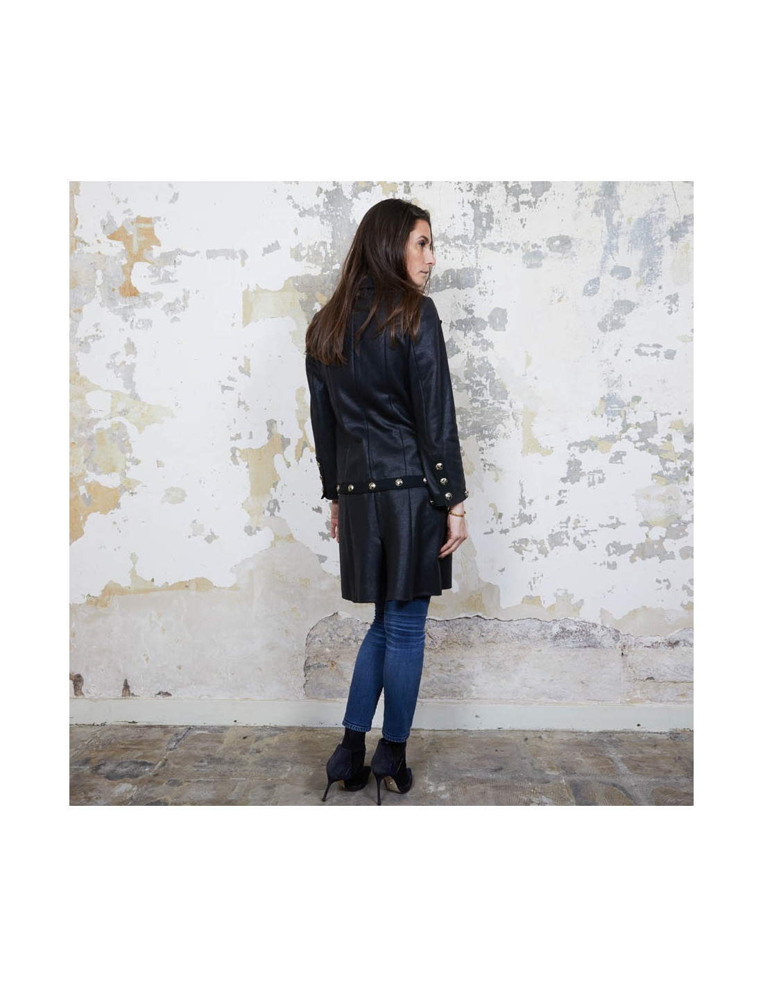 Dimensions à plat : largeur des épaules 36 cm, largeur sous les aisselles 45 cm, la hauteur de la veste 61 cm. Longueur des manches 56 cm. Robe hauteur totale 91 cm.