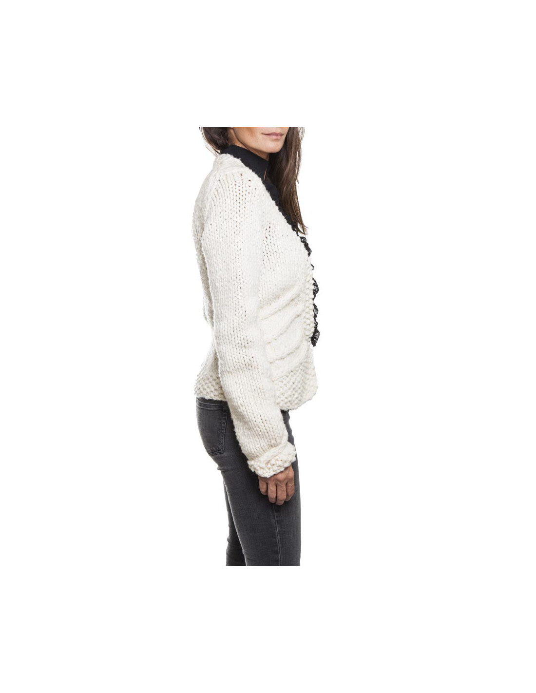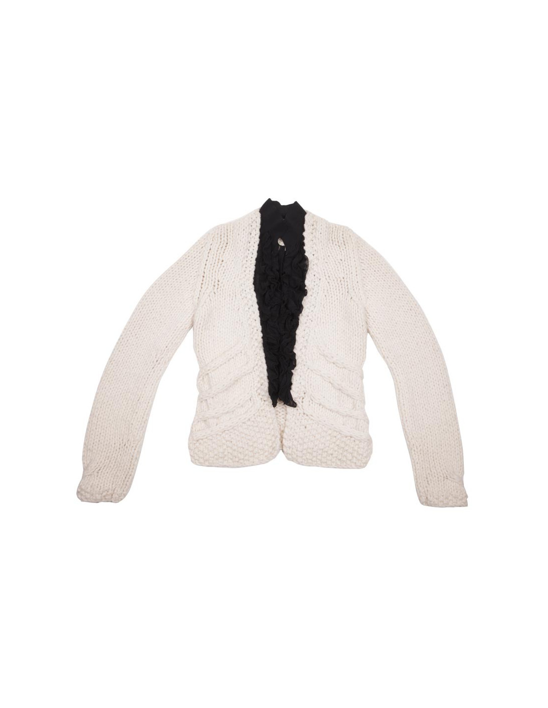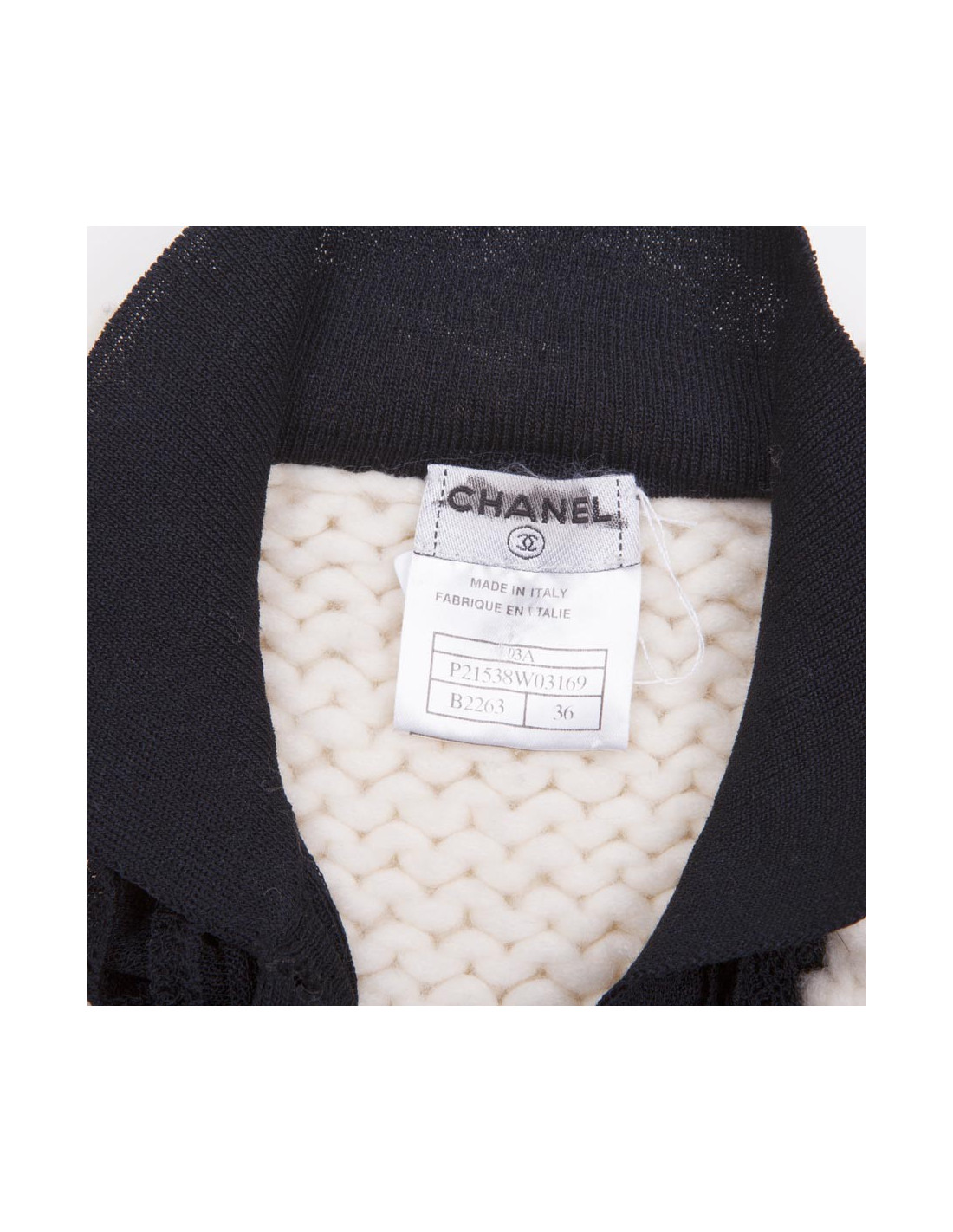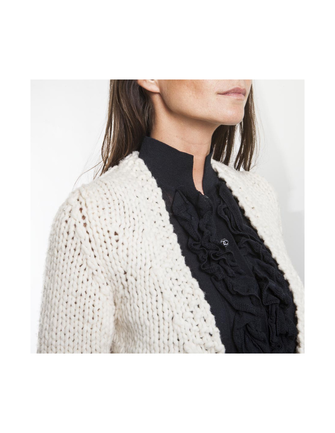 Gilet T 36 CHANEL en laine écrue et plastron noir