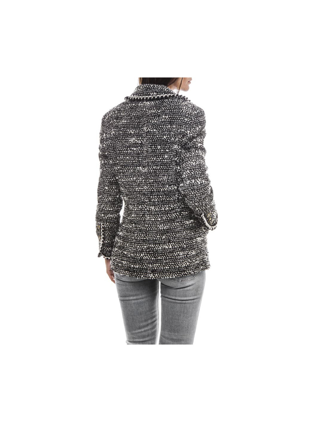 Veste CHANEL T 40 tweed noire et blanc