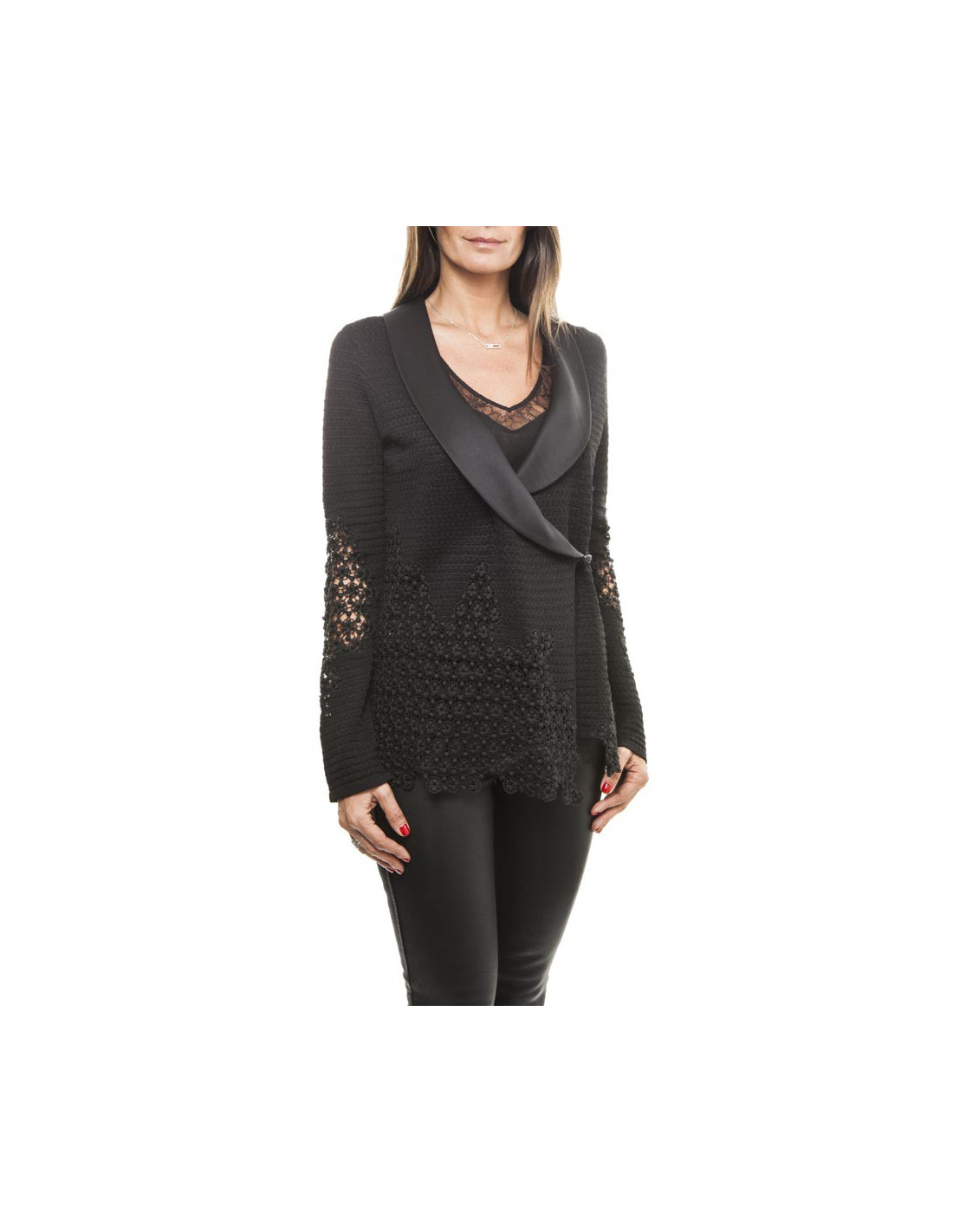 Veste T 38 CHANEL noire et dentelle